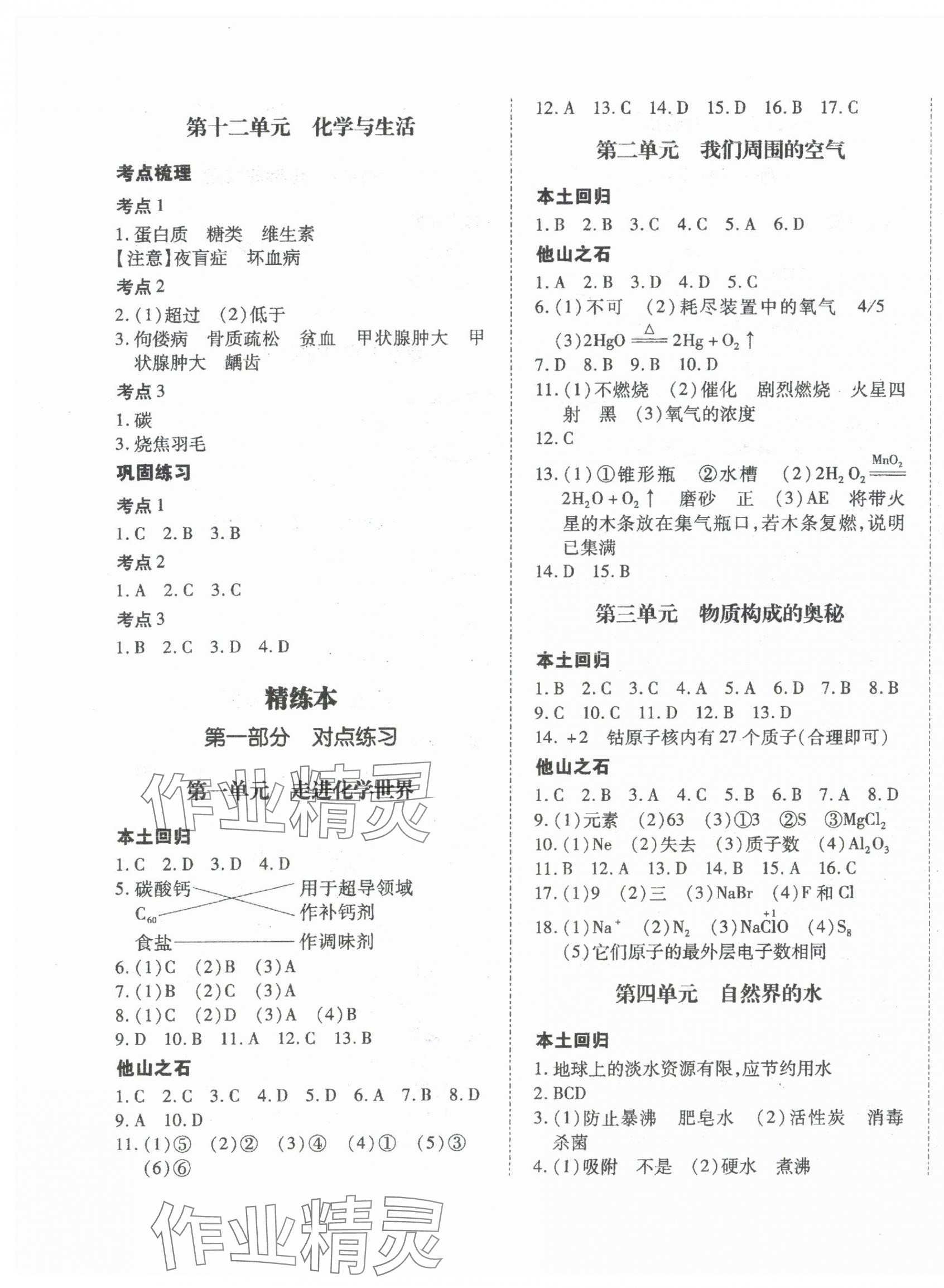 注:目前有些书本章节名称可能整理的还不是很完善,但都是按照顺序排列的,请同学们按照顺序仔细查找。练习册 2024年本土攻略精准复习方案化学中考云南专版 答案主要是用来给同学们做完题方便对答案用的,请勿直接抄袭。