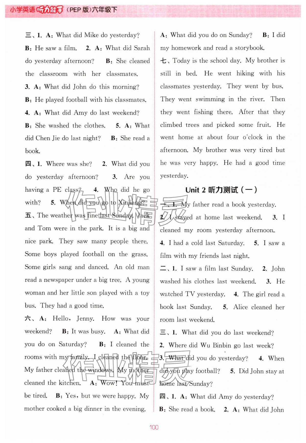 注:目前有些书本章节名称可能整理的还不是很完善,但都是按照顺序排列的,请同学们按照顺序仔细查找。练习册 2024年通城学典小学英语听力能手六年级下册人教版 答案主要是用来给同学们做完题方便对答案用的,请勿直接抄袭。