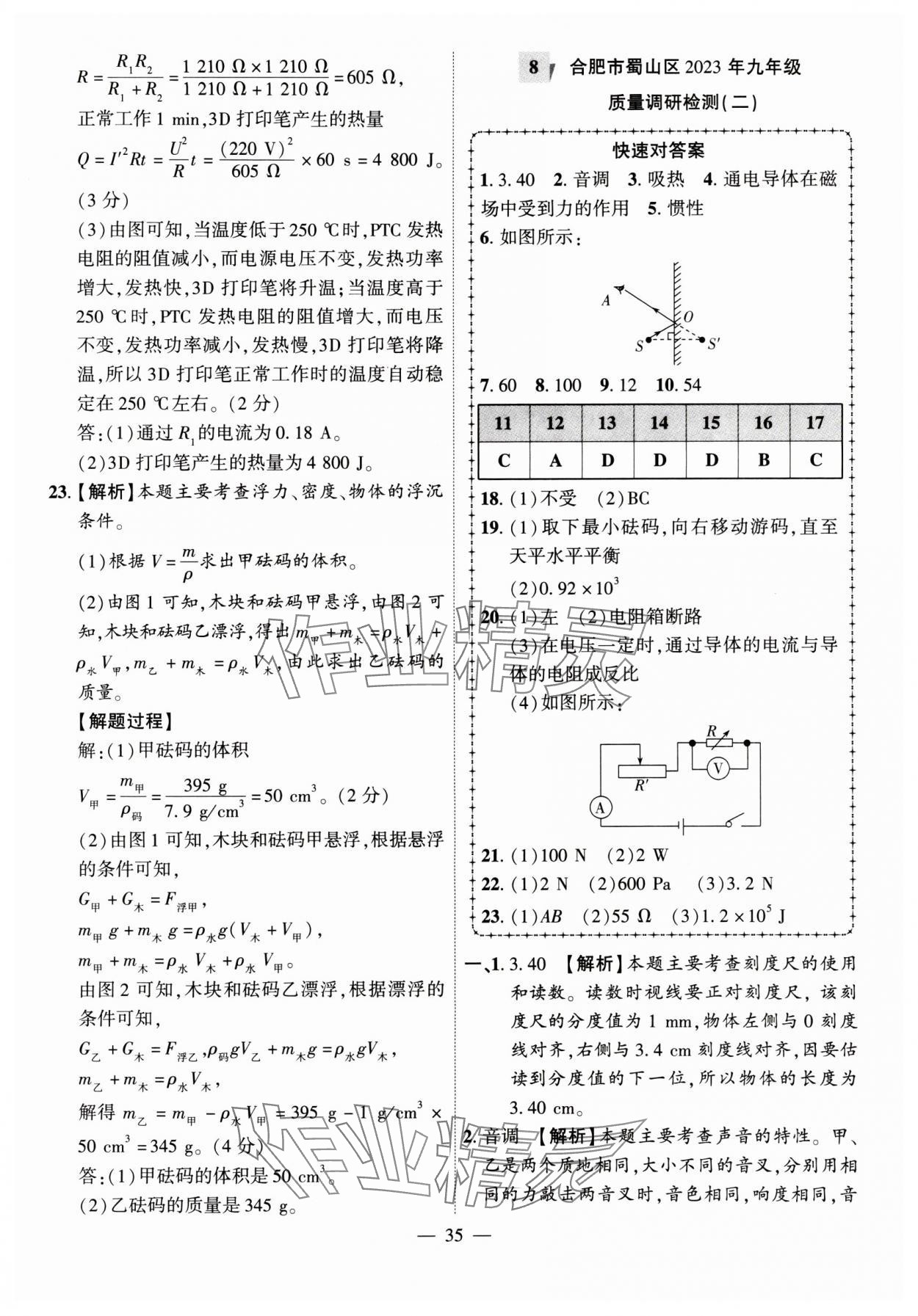 注:目前有些书本章节名称可能整理的还不是很完善,但都是按照顺序排列的,请同学们按照顺序仔细查找。练习册 2024年秒杀中考安徽中考试题汇编物理 答案主要是用来给同学们做完题方便对答案用的,请勿直接抄袭。