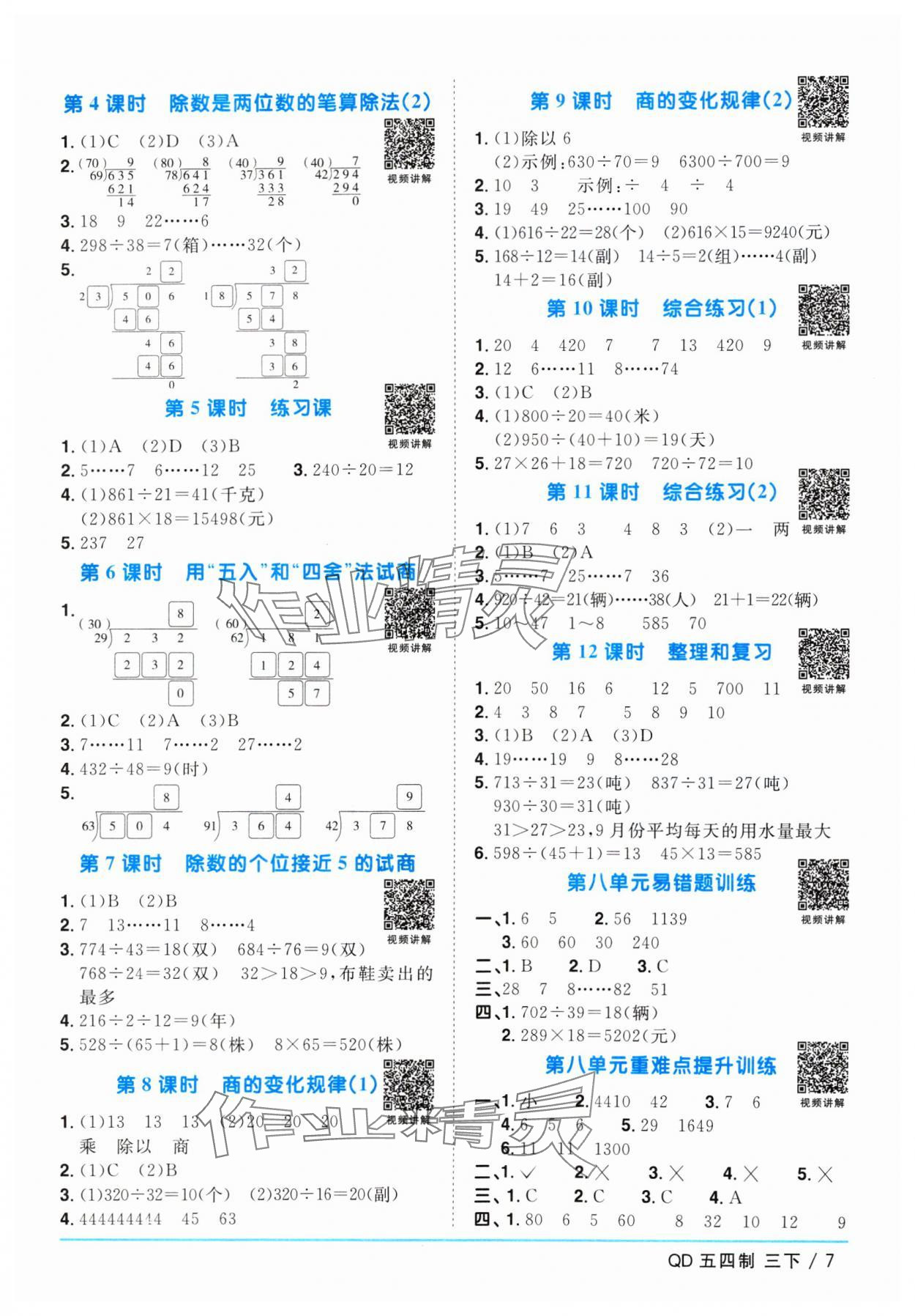 注:目前有些书本章节名称可能整理的还不是很完善,但都是按照顺序排列的,请同学们按照顺序仔细查找。练习册 2024年阳光同学课时优化作业三年级数学下册青岛版五四制 答案主要是用来给同学们做完题方便对答案用的,请勿直接抄袭。