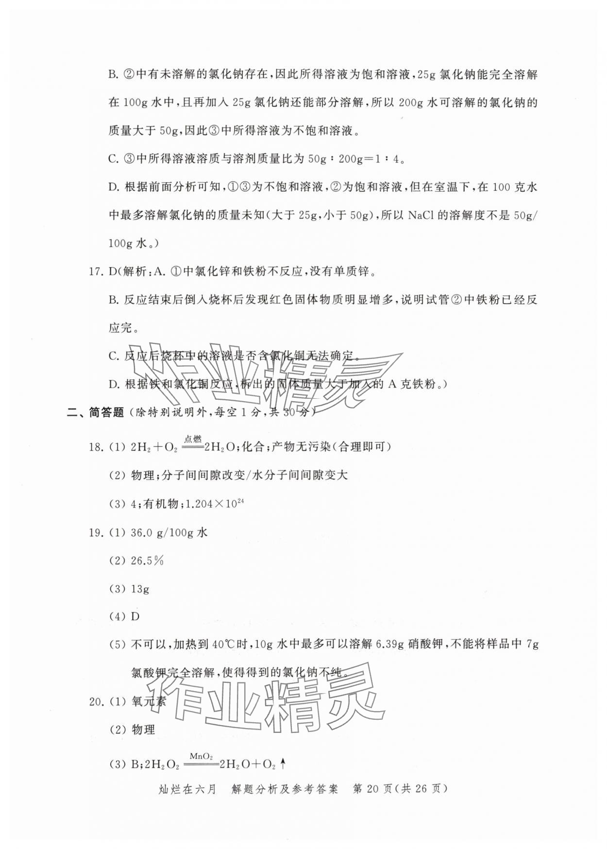注:目前有些书本章节名称可能整理的还不是很完善,但都是按照顺序排列的,请同学们按照顺序仔细查找。练习册 2024年灿烂在六月模拟强化测试精编化学 答案主要是用来给同学们做完题方便对答案用的,请勿直接抄袭。