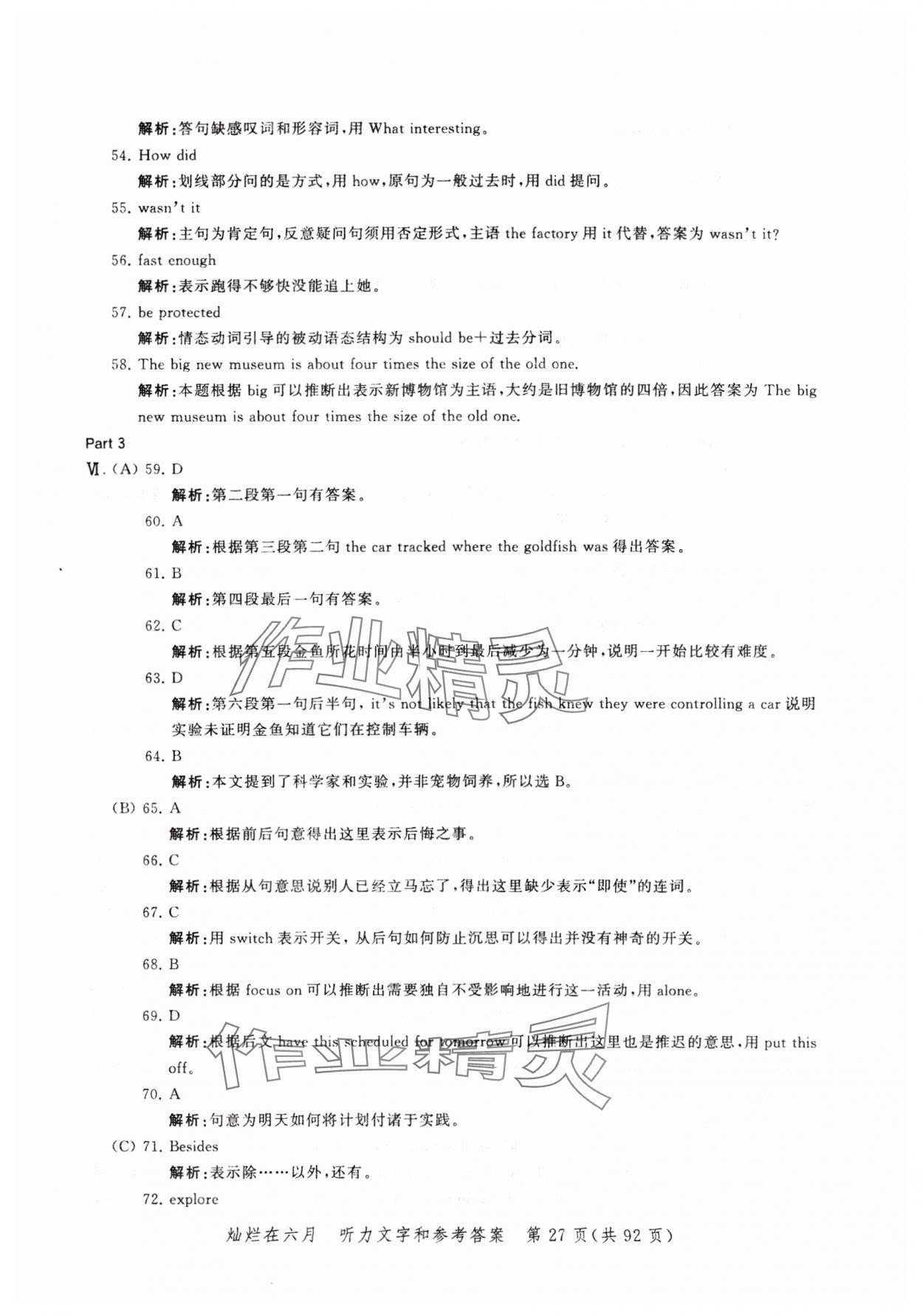 注:目前有些书本章节名称可能整理的还不是很完善,但都是按照顺序排列的,请同学们按照顺序仔细查找。练习册 2024年灿烂在六月模拟强化测试精编英语 答案主要是用来给同学们做完题方便对答案用的,请勿直接抄袭。