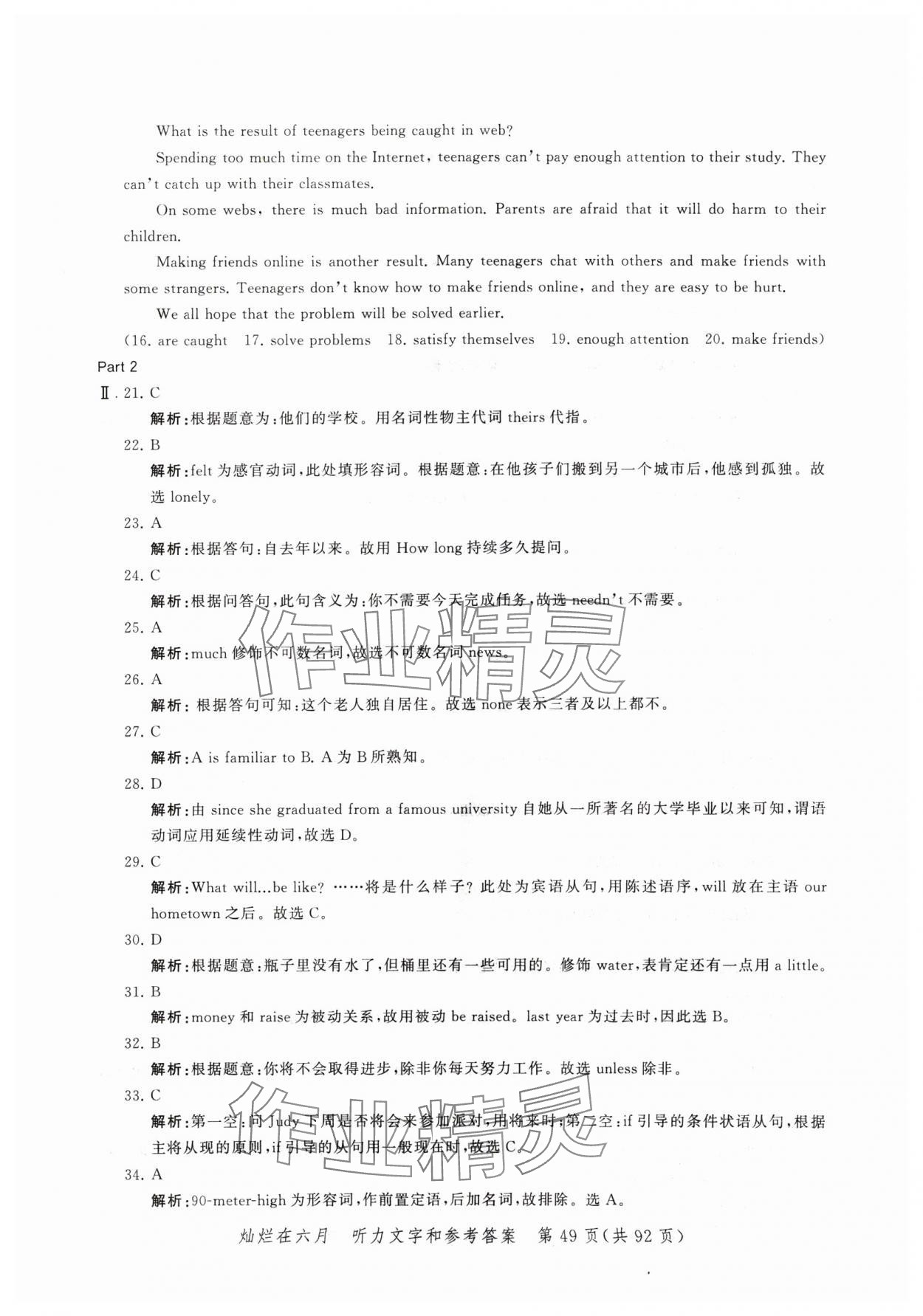 注:目前有些书本章节名称可能整理的还不是很完善,但都是按照顺序排列的,请同学们按照顺序仔细查找。练习册 2024年灿烂在六月模拟强化测试精编英语 答案主要是用来给同学们做完题方便对答案用的,请勿直接抄袭。