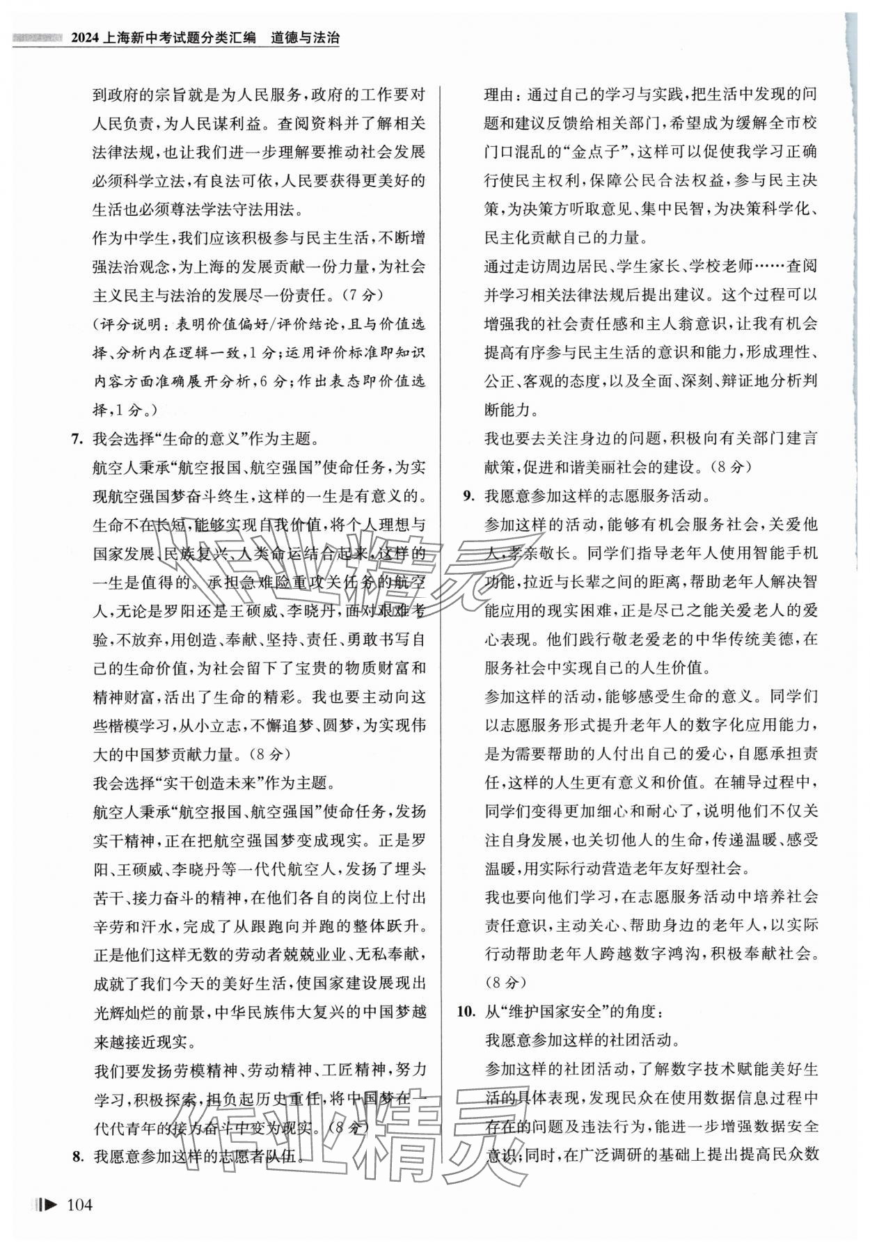 注:目前有些书本章节名称可能整理的还不是很完善,但都是按照顺序排列的,请同学们按照顺序仔细查找。练习册 2024年上海新中考试题分类汇编道德与法治 答案主要是用来给同学们做完题方便对答案用的,请勿直接抄袭。