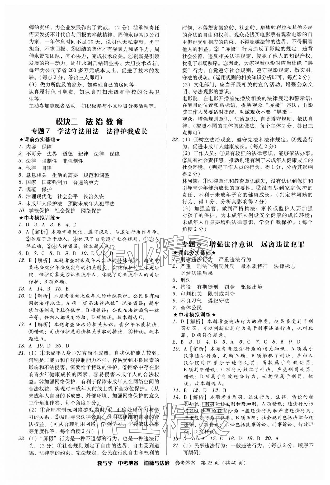 注:目前有些书本章节名称可能整理的还不是很完善,但都是按照顺序排列的,请同学们按照顺序仔细查找。练习册 2024年教与学中考必备道德与法治 答案主要是用来给同学们做完题方便对答案用的,请勿直接抄袭。