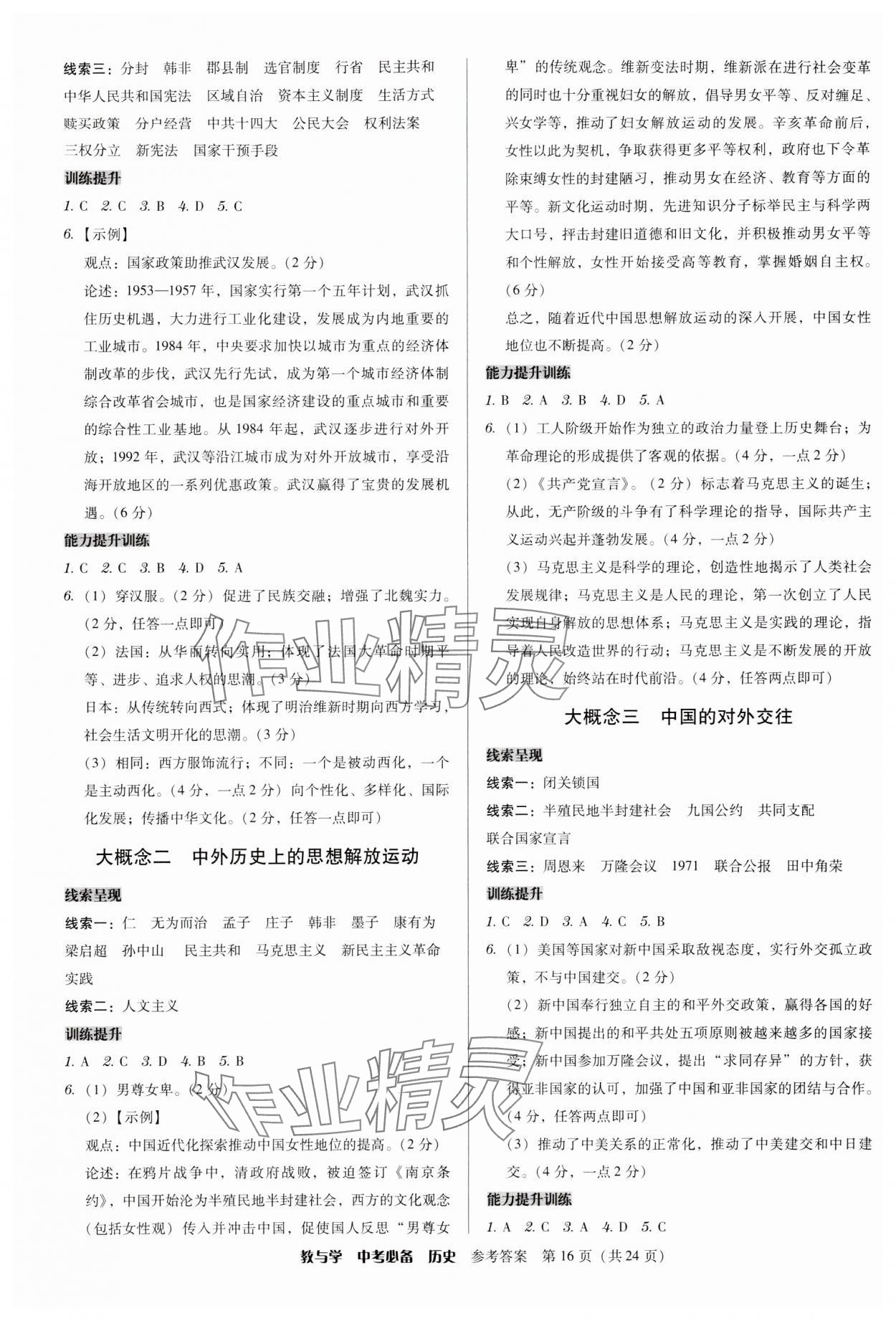 注:目前有些书本章节名称可能整理的还不是很完善,但都是按照顺序排列的,请同学们按照顺序仔细查找。练习册 2024年教与学中考必备历史 答案主要是用来给同学们做完题方便对答案用的,请勿直接抄袭。