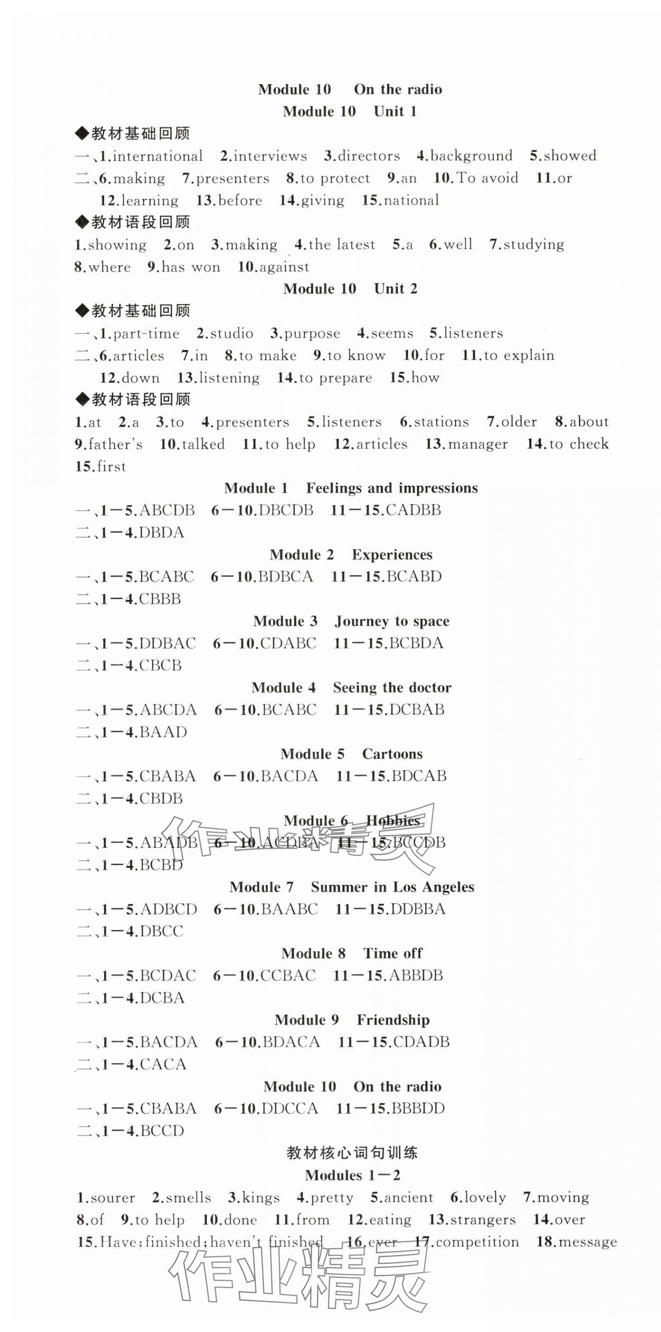 注:目前有些书本章节名称可能整理的还不是很完善,但都是按照顺序排列的,请同学们按照顺序仔细查找。练习册 2024年名师面对面同步作业本八年级英语下册外研版浙江专版 答案主要是用来给同学们做完题方便对答案用的,请勿直接抄袭。