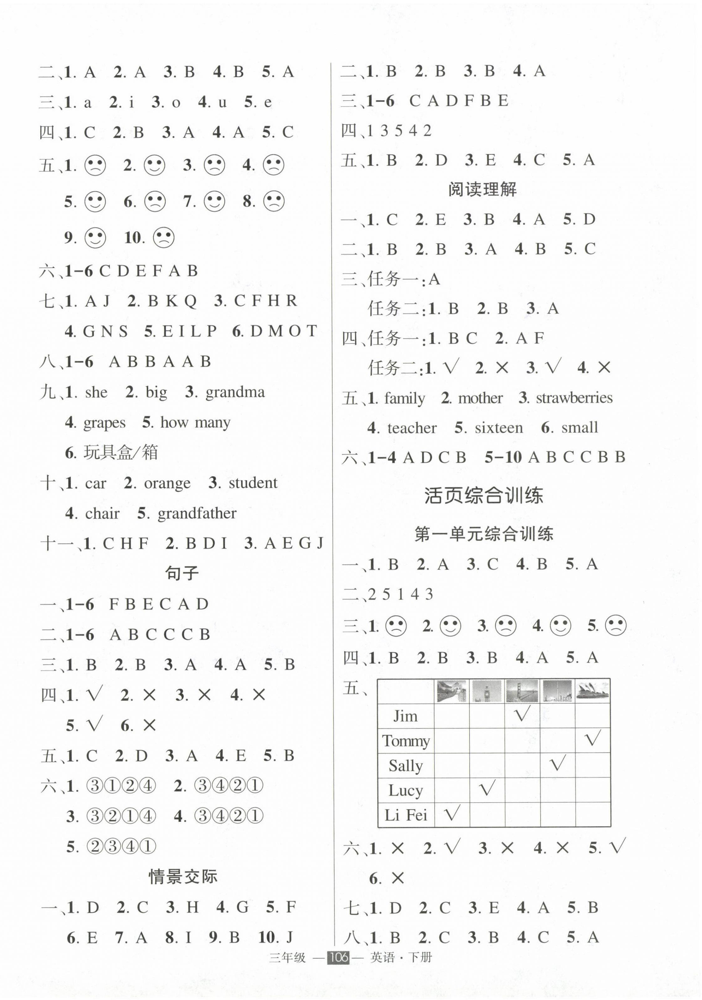 注:目前有些书本章节名称可能整理的还不是很完善,但都是按照顺序排列的,请同学们按照顺序仔细查找。练习册 2024年状元成才路创优作业100分三年级英语下册人教版浙江专版 答案主要是用来给同学们做完题方便对答案用的,请勿直接抄袭。
