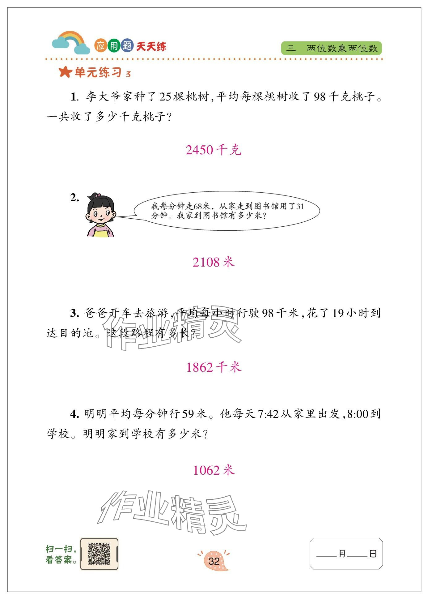 《2024年应用题天天练青岛出版社三年级数学下册青岛版》