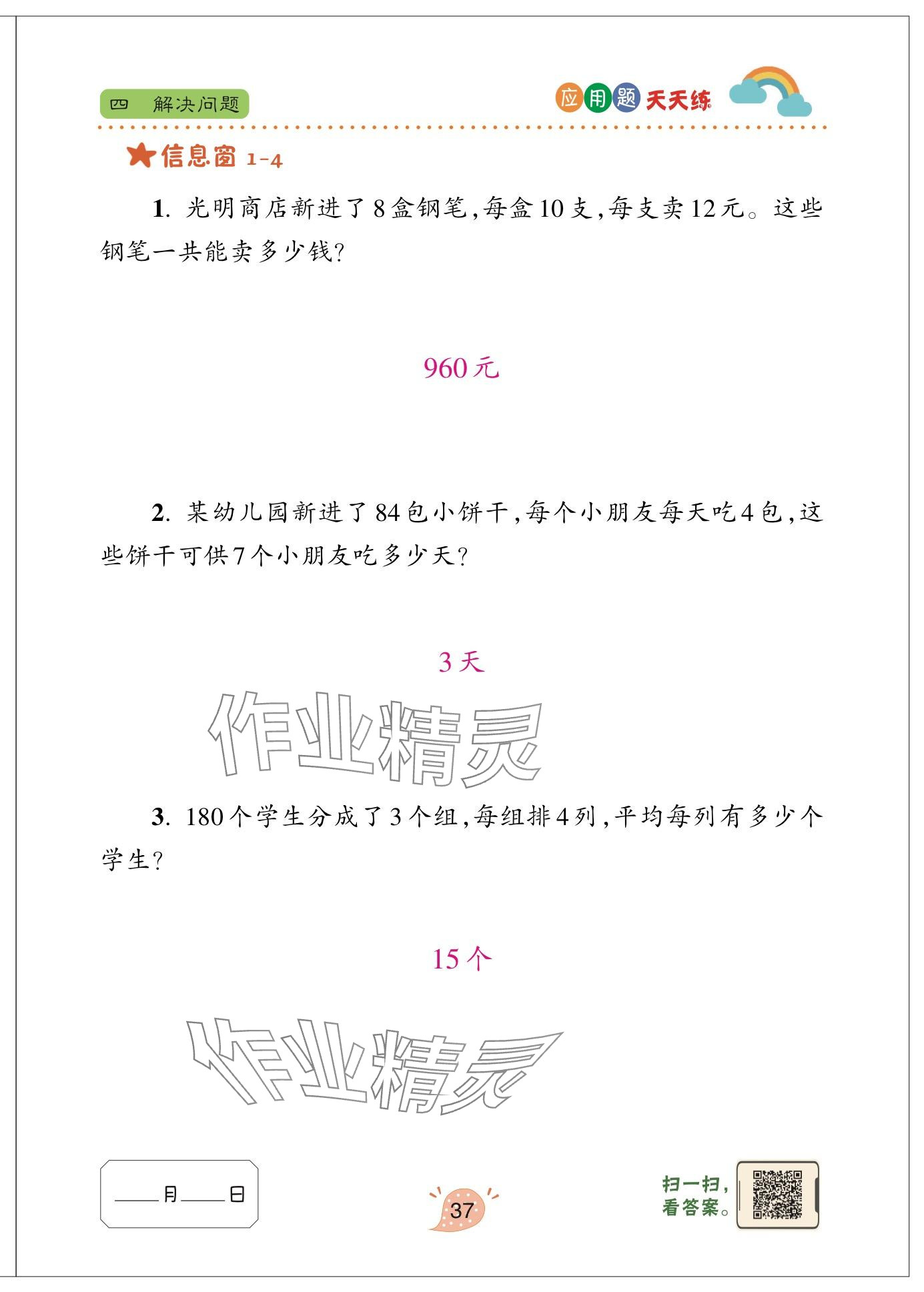 注:目前有些书本章节名称可能整理的还不是很完善,但都是按照顺序排列的,请同学们按照顺序仔细查找。练习册 2024年应用题天天练青岛出版社三年级数学下册青岛版 答案主要是用来给同学们做完题方便对答案用的,请勿直接抄袭。