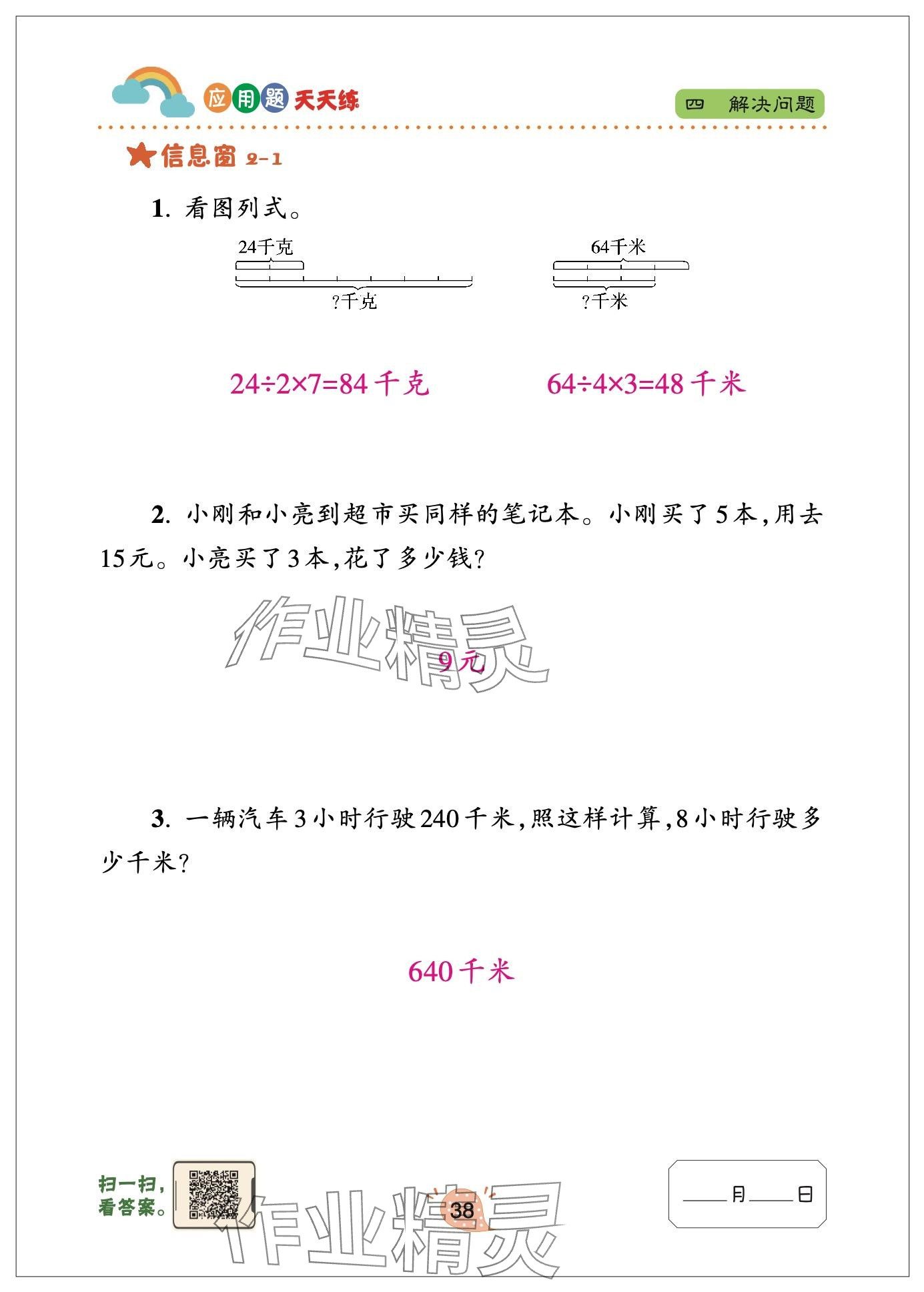 注:目前有些书本章节名称可能整理的还不是很完善,但都是按照顺序排列的,请同学们按照顺序仔细查找。练习册 2024年应用题天天练青岛出版社三年级数学下册青岛版 答案主要是用来给同学们做完题方便对答案用的,请勿直接抄袭。
