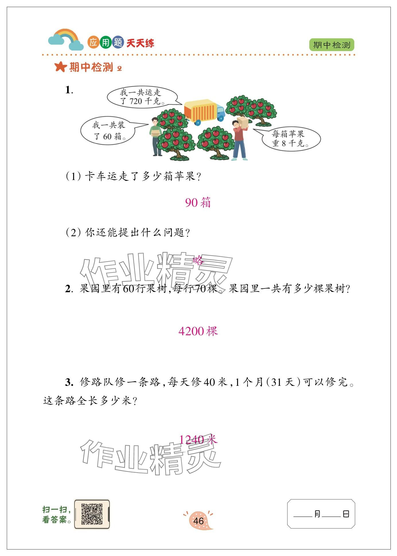 注:目前有些书本章节名称可能整理的还不是很完善,但都是按照顺序排列的,请同学们按照顺序仔细查找。练习册 2024年应用题天天练青岛出版社三年级数学下册青岛版 答案主要是用来给同学们做完题方便对答案用的,请勿直接抄袭。