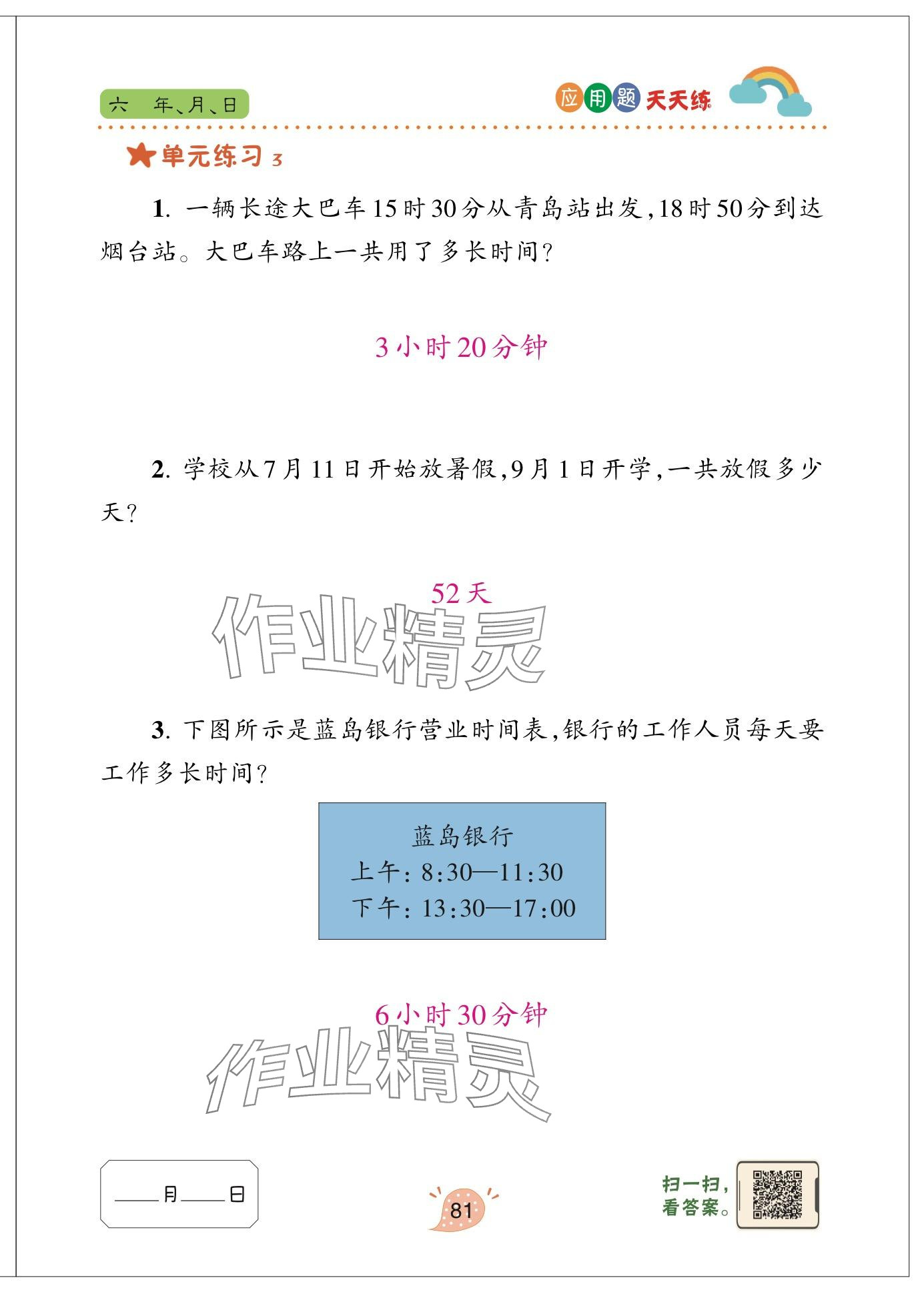 注:目前有些书本章节名称可能整理的还不是很完善,但都是按照顺序排列的,请同学们按照顺序仔细查找。练习册 2024年应用题天天练青岛出版社三年级数学下册青岛版 答案主要是用来给同学们做完题方便对答案用的,请勿直接抄袭。