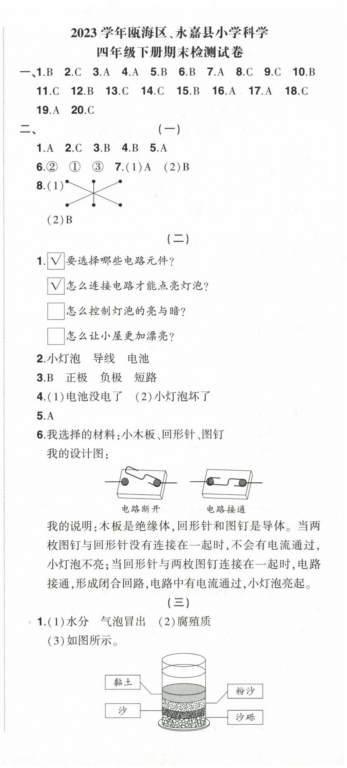 2024年状元成才路创优作业100分四年级科学下册教科版