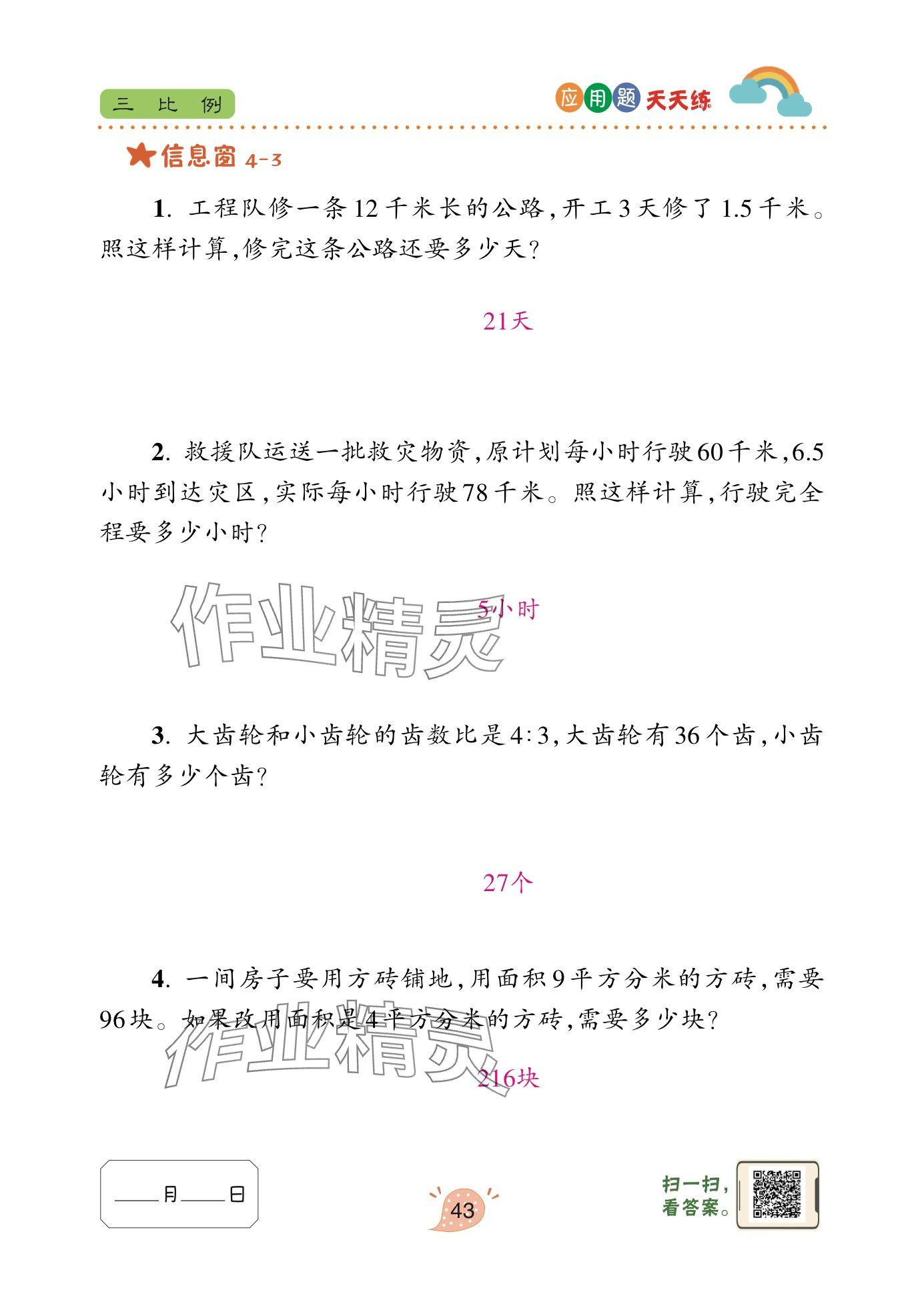 2024年应用题天天练青岛出版社六年级数学下册青岛版