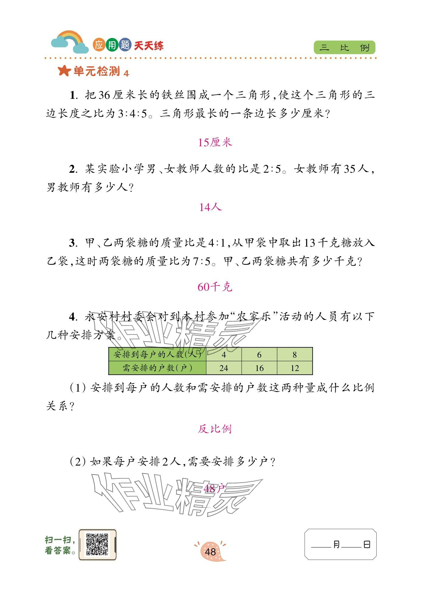 注:目前有些书本章节名称可能整理的还不是很完善,但都是按照顺序排列的,请同学们按照顺序仔细查找。练习册 2024年应用题天天练青岛出版社六年级数学下册青岛版 答案主要是用来给同学们做完题方便对答案用的,请勿直接抄袭。