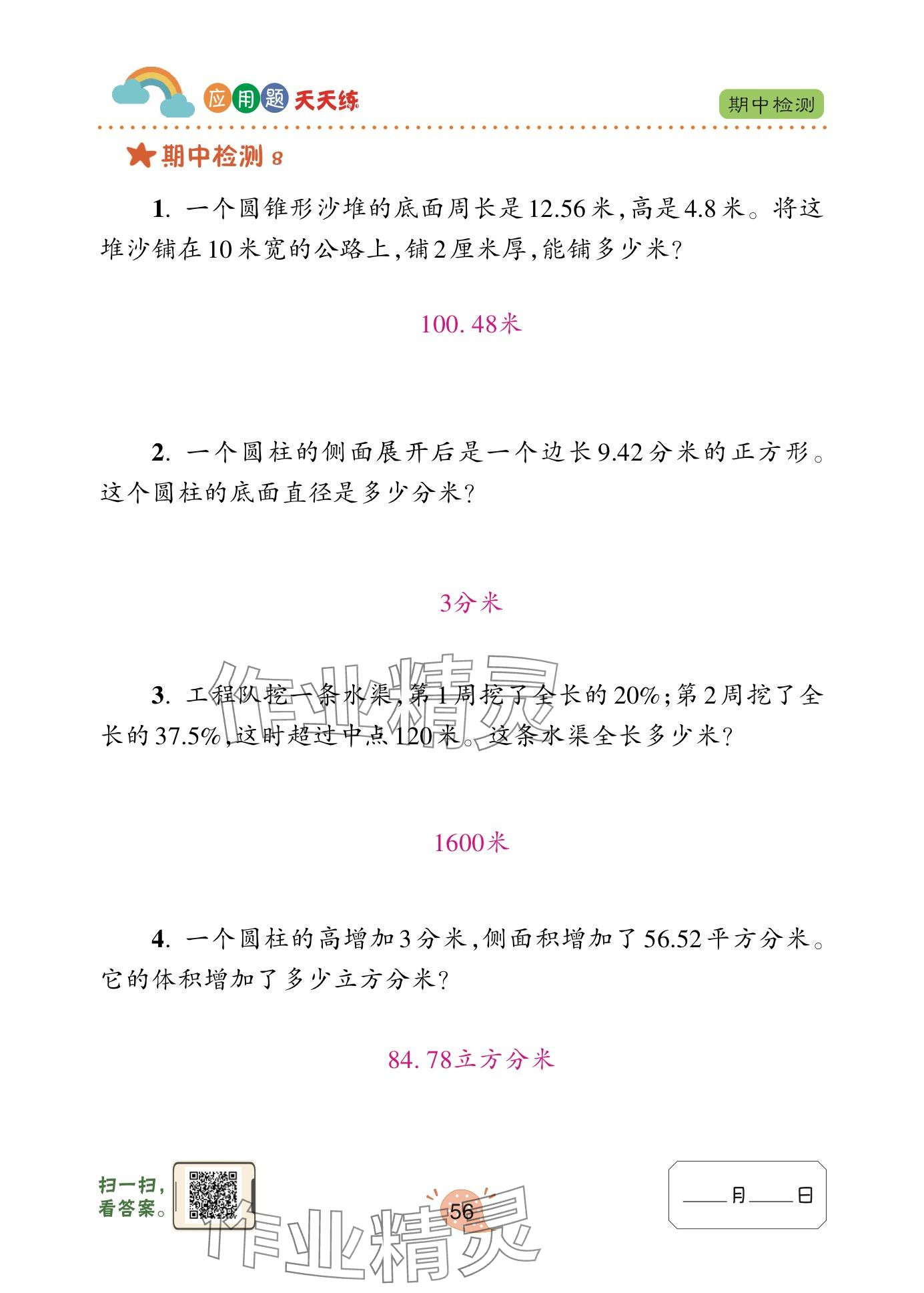注:目前有些书本章节名称可能整理的还不是很完善,但都是按照顺序排列的,请同学们按照顺序仔细查找。练习册 2024年应用题天天练青岛出版社六年级数学下册青岛版 答案主要是用来给同学们做完题方便对答案用的,请勿直接抄袭。
