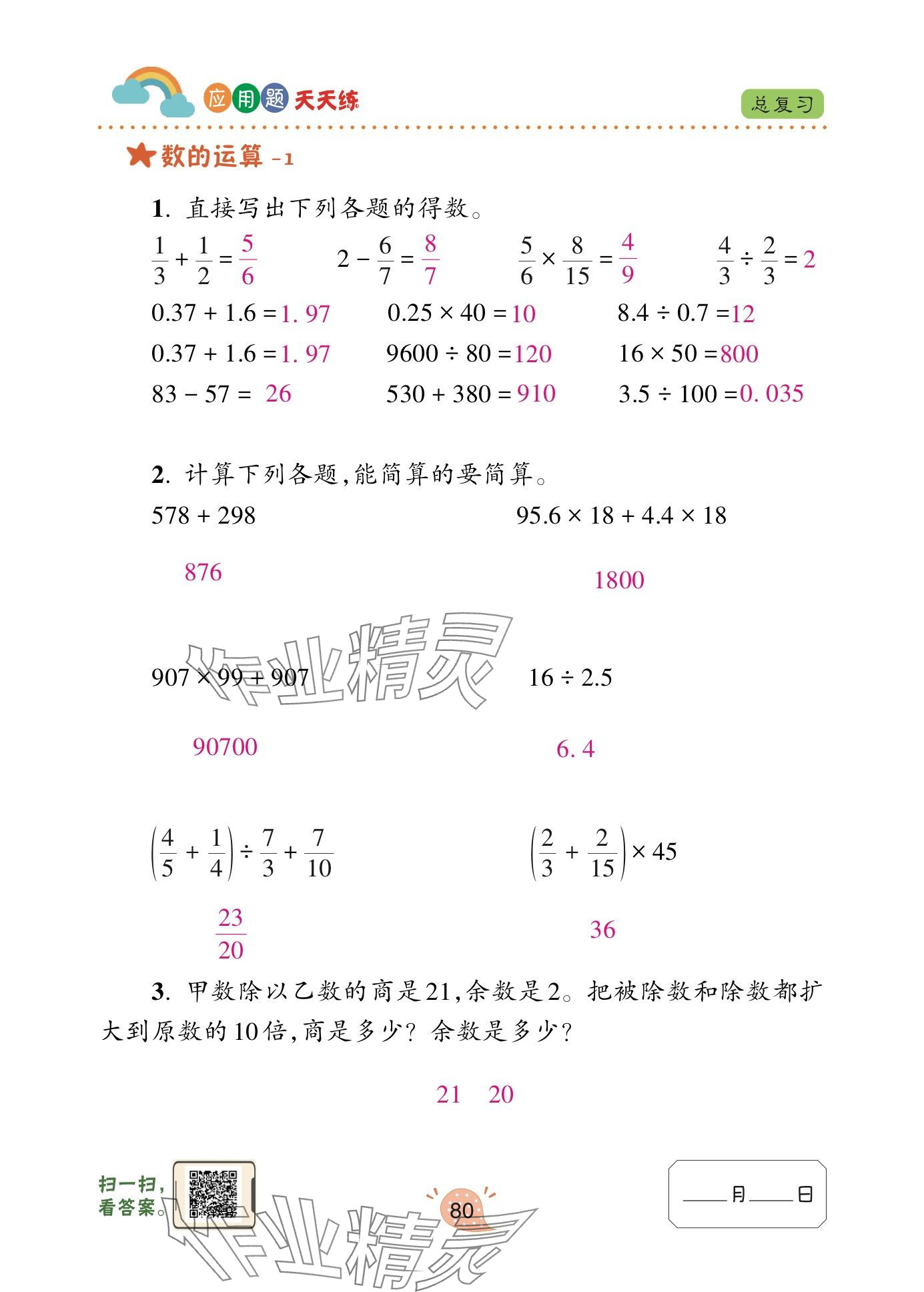 注:目前有些书本章节名称可能整理的还不是很完善,但都是按照顺序排列的,请同学们按照顺序仔细查找。练习册 2024年应用题天天练青岛出版社六年级数学下册青岛版 答案主要是用来给同学们做完题方便对答案用的,请勿直接抄袭。