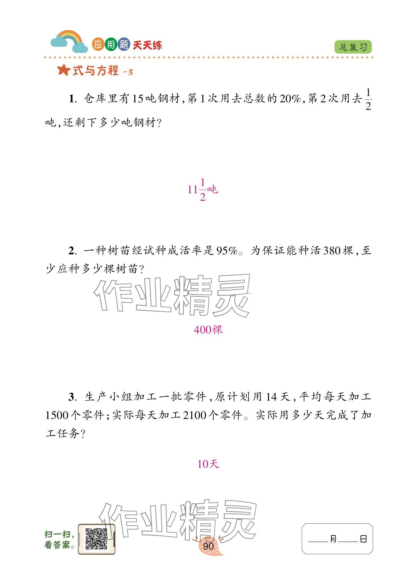2024年应用题天天练青岛出版社六年级数学下册青岛版