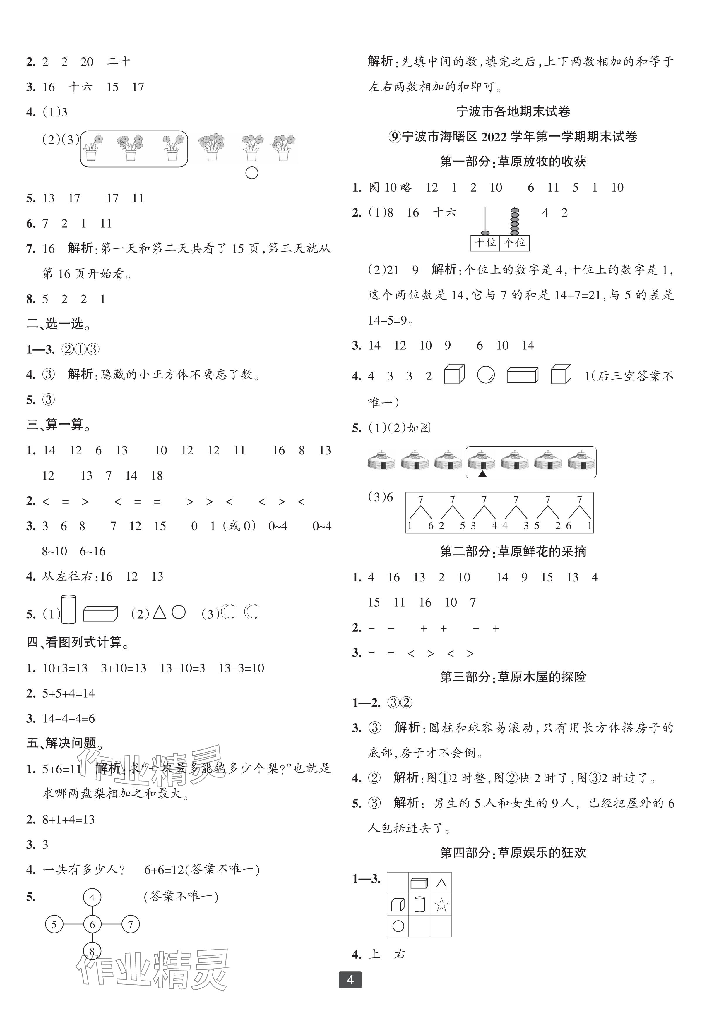 注:目前有些书本章节名称可能整理的还不是很完善,但都是按照顺序排列的,请同学们按照顺序仔细查找。练习册 2023年浙江新期末一年级数学上册人教版宁波专版 答案主要是用来给同学们做完题方便对答案用的,请勿直接抄袭。