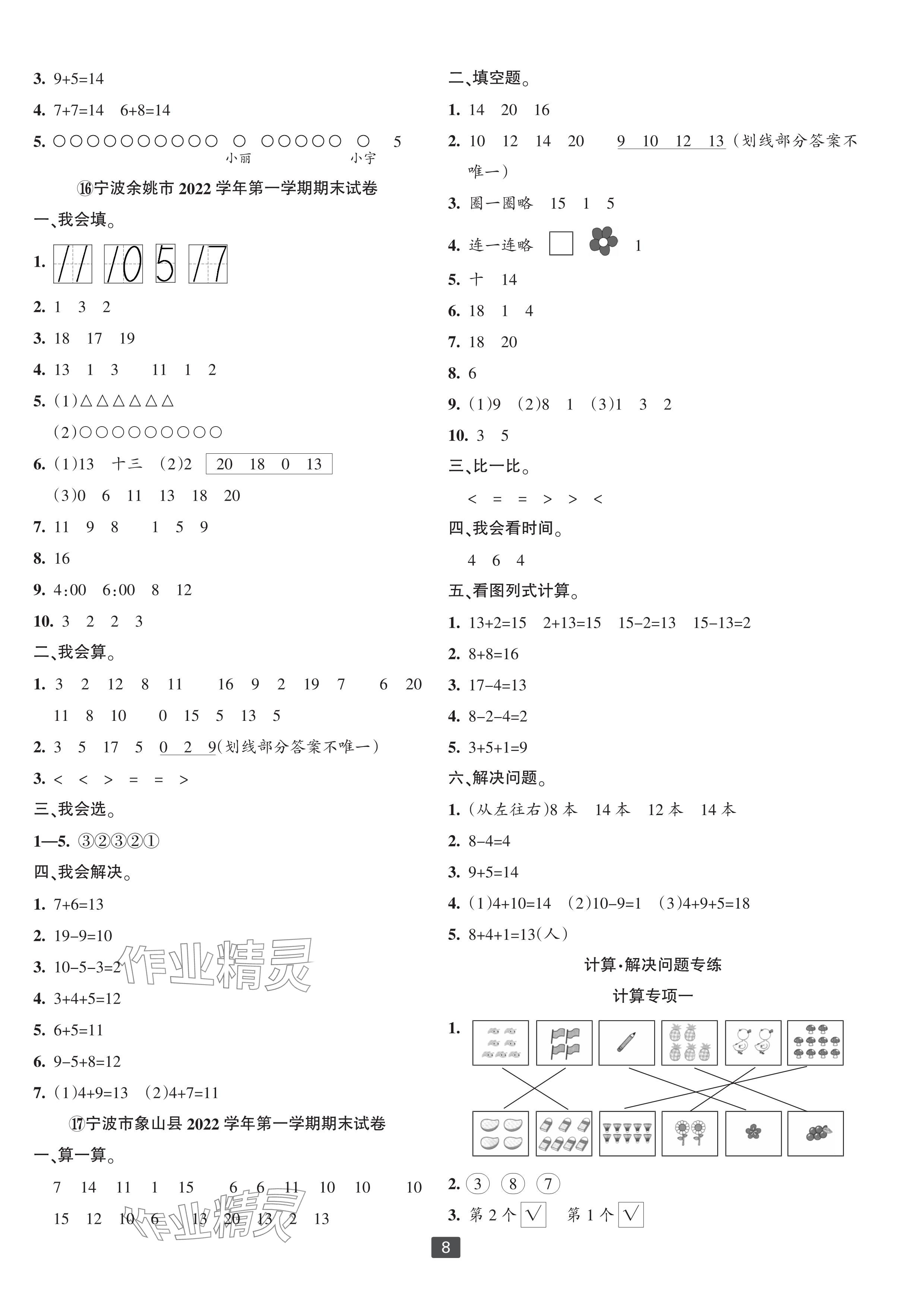注:目前有些书本章节名称可能整理的还不是很完善,但都是按照顺序排列的,请同学们按照顺序仔细查找。练习册 2023年浙江新期末一年级数学上册人教版宁波专版 答案主要是用来给同学们做完题方便对答案用的,请勿直接抄袭。