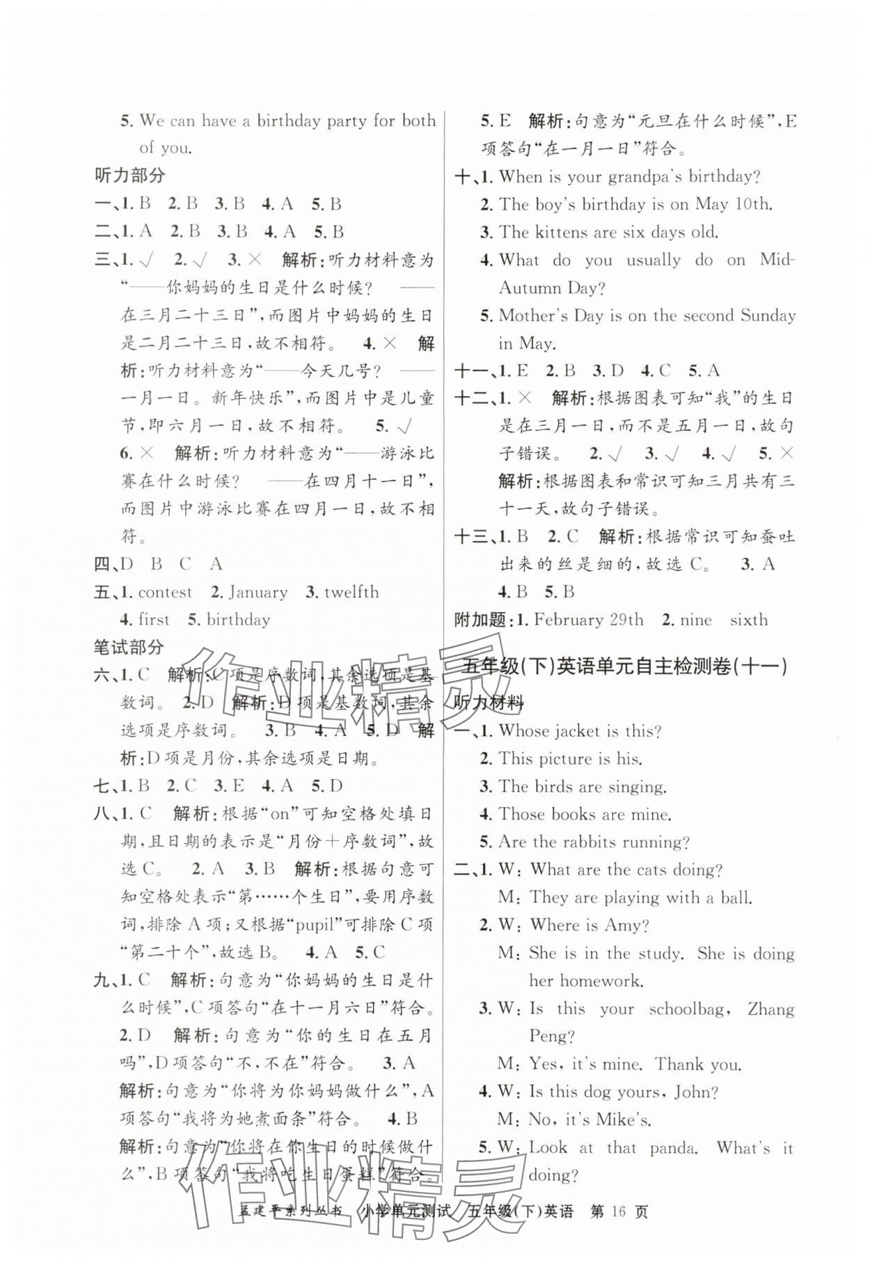 注:目前有些书本章节名称可能整理的还不是很完善,但都是按照顺序排列的,请同学们按照顺序仔细查找。练习册 2024年孟建平单元测试五年级英语下册人教版 答案主要是用来给同学们做完题方便对答案用的,请勿直接抄袭。