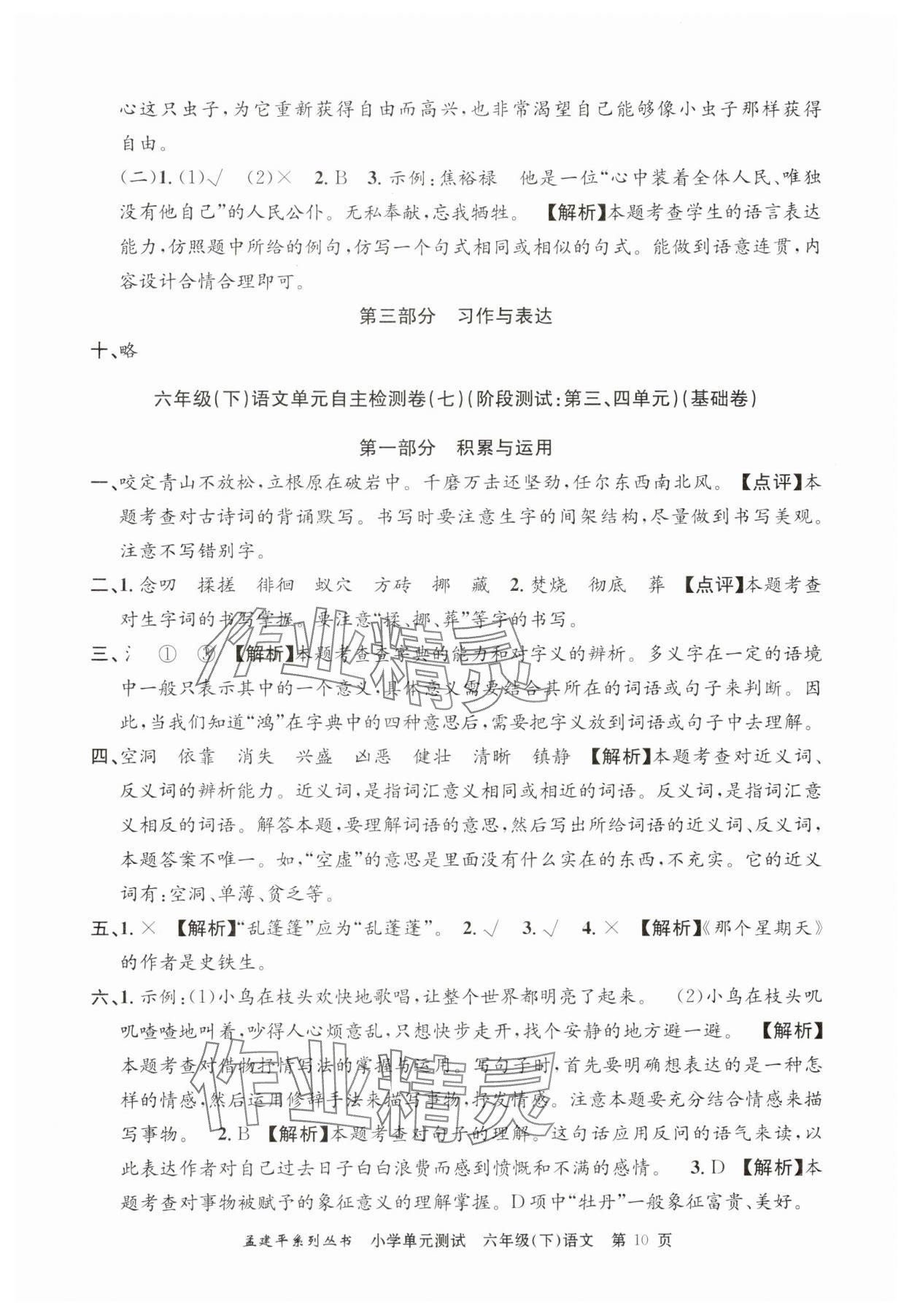 注:目前有些书本章节名称可能整理的还不是很完善,但都是按照顺序排列的,请同学们按照顺序仔细查找。练习册 2024年孟建平单元测试六年级语文下册人教版 答案主要是用来给同学们做完题方便对答案用的,请勿直接抄袭。