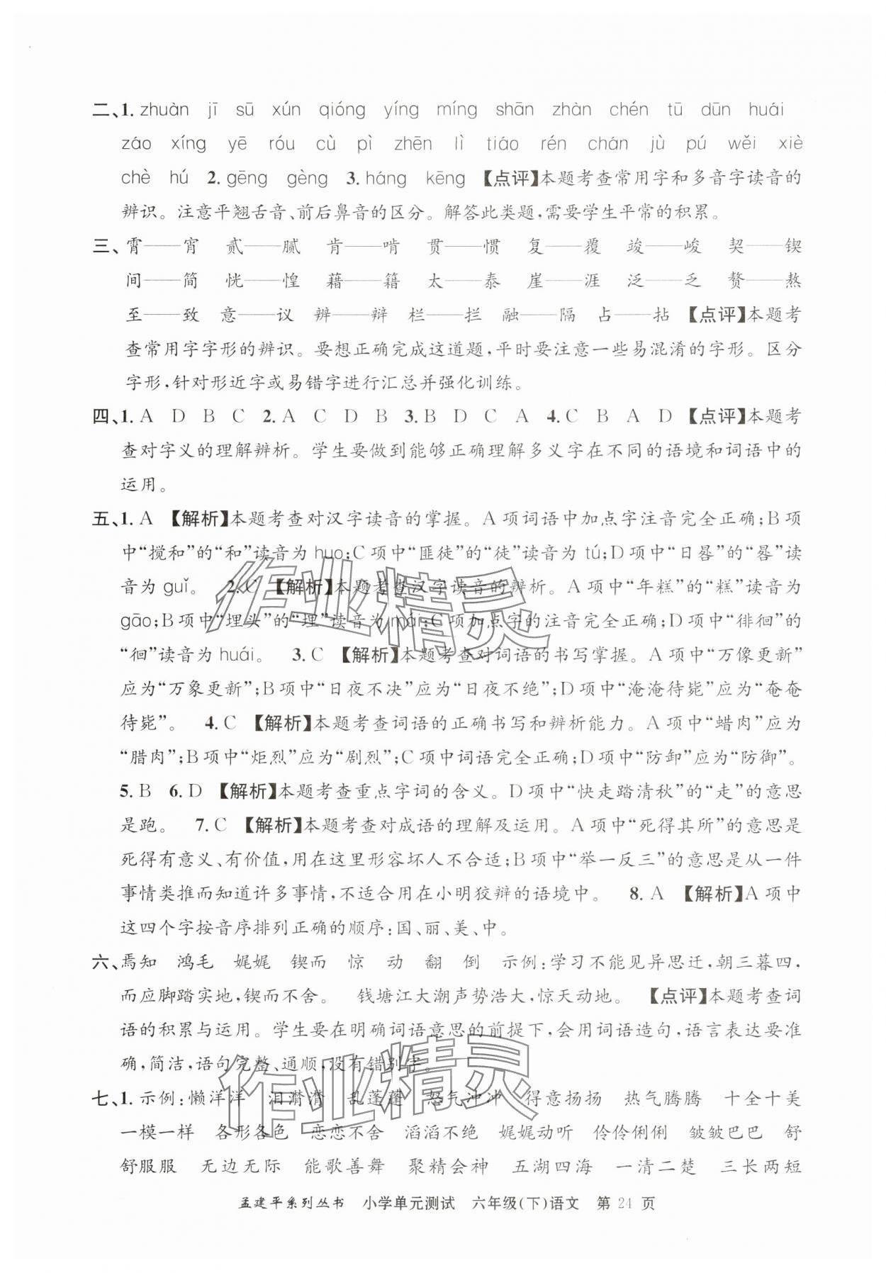 注:目前有些书本章节名称可能整理的还不是很完善,但都是按照顺序排列的,请同学们按照顺序仔细查找。练习册 2024年孟建平单元测试六年级语文下册人教版 答案主要是用来给同学们做完题方便对答案用的,请勿直接抄袭。