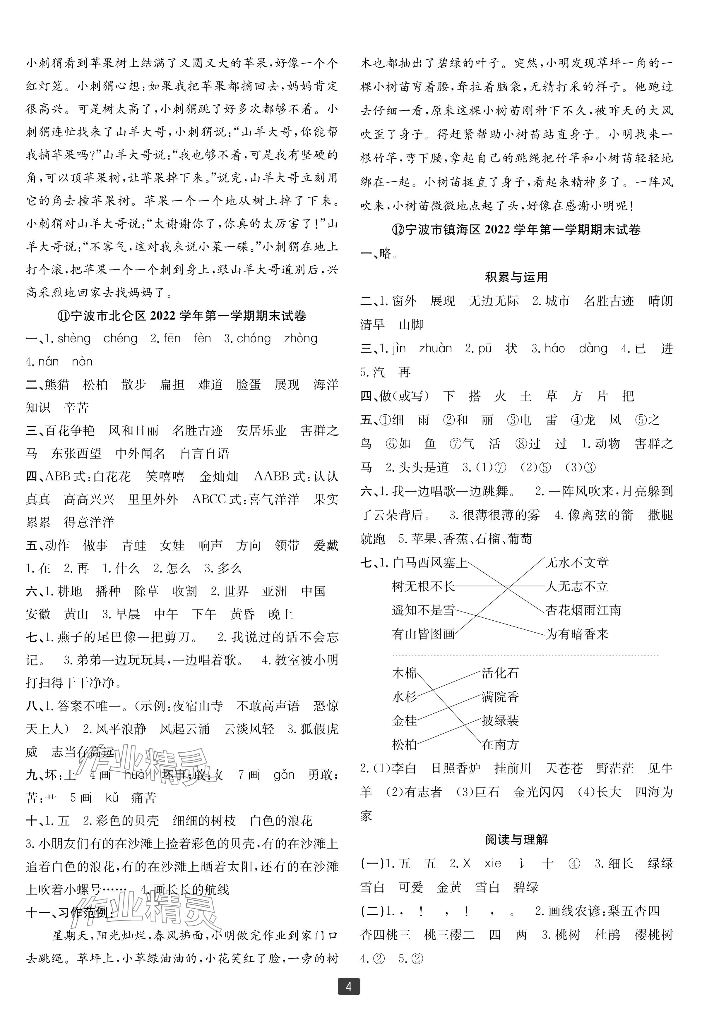 注:目前有些书本章节名称可能整理的还不是很完善,但都是按照顺序排列的,请同学们按照顺序仔细查找。练习册 2023年浙江新期末二年级语文上册人教版宁波专版 答案主要是用来给同学们做完题方便对答案用的,请勿直接抄袭。
