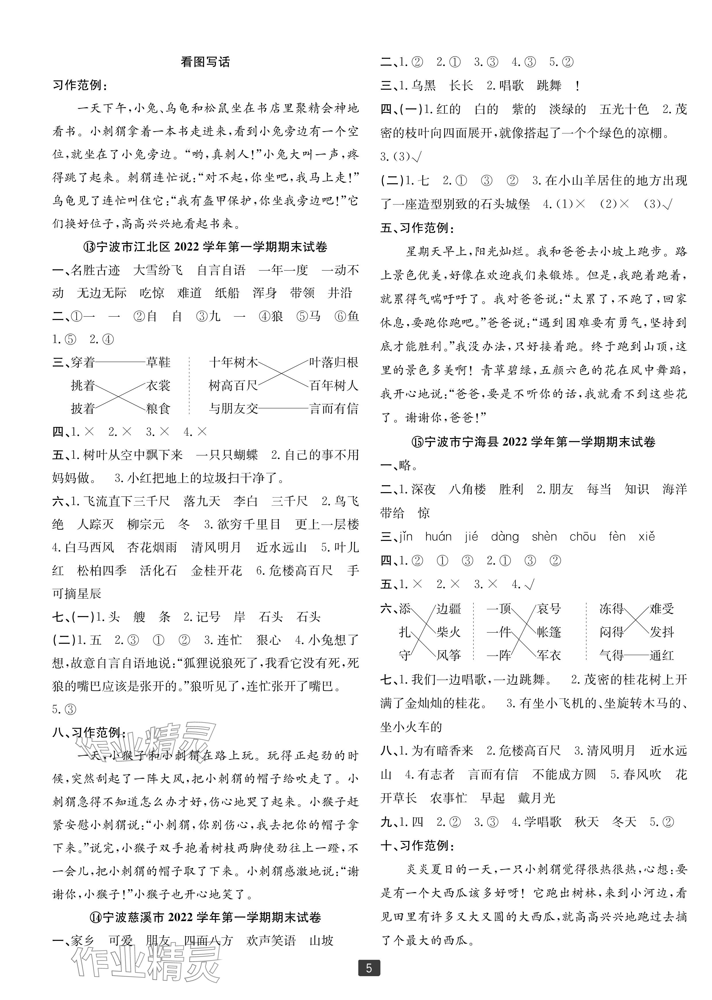注:目前有些书本章节名称可能整理的还不是很完善,但都是按照顺序排列的,请同学们按照顺序仔细查找。练习册 2023年浙江新期末二年级语文上册人教版宁波专版 答案主要是用来给同学们做完题方便对答案用的,请勿直接抄袭。