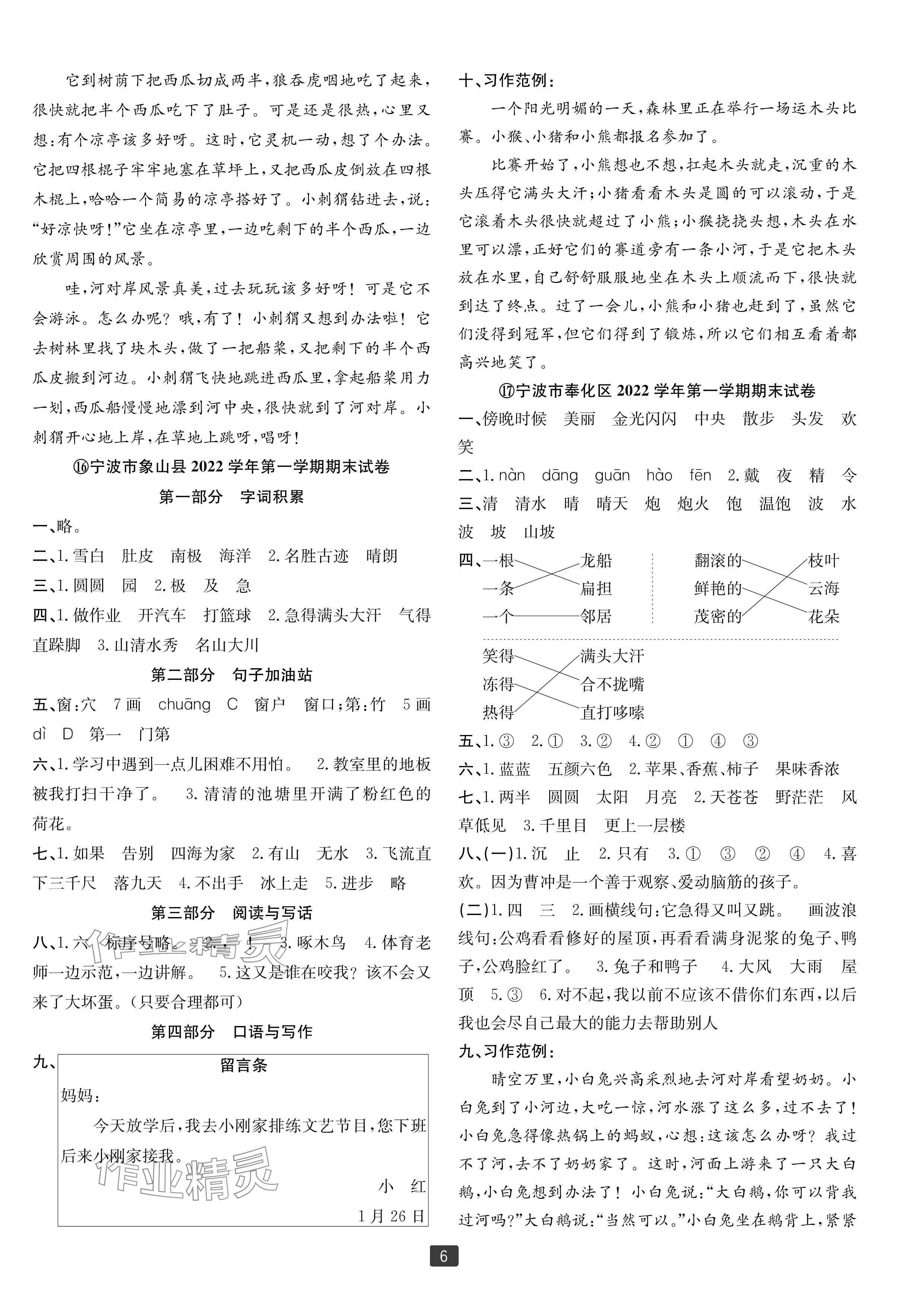 注:目前有些书本章节名称可能整理的还不是很完善,但都是按照顺序排列的,请同学们按照顺序仔细查找。练习册 2023年浙江新期末二年级语文上册人教版宁波专版 答案主要是用来给同学们做完题方便对答案用的,请勿直接抄袭。