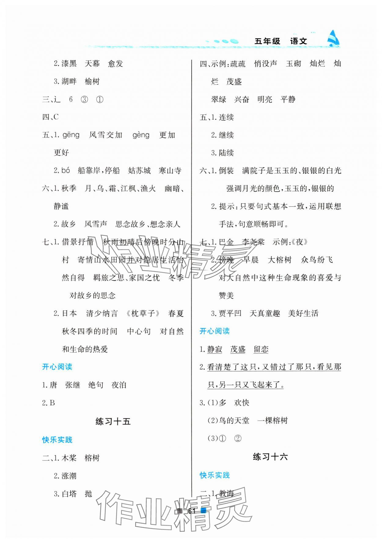 注:目前有些书本章节名称可能整理的还不是很完善,但都是按照顺序排列的,请同学们按照顺序仔细查找。练习册 2024年寒假作业五年级语文北京教育出版社 答案主要是用来给同学们做完题方便对答案用的,请勿直接抄袭。