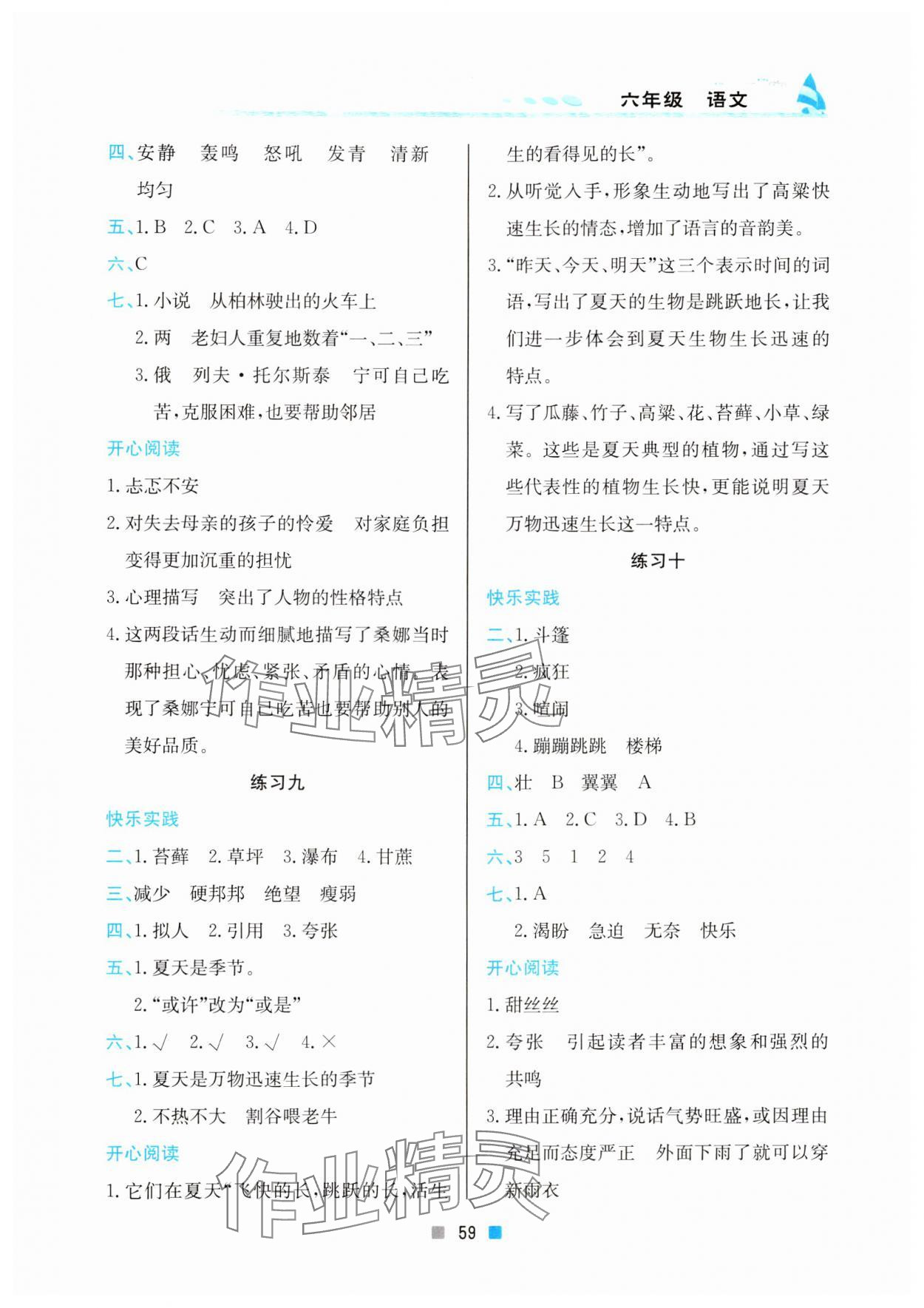 注:目前有些书本章节名称可能整理的还不是很完善,但都是按照顺序排列的,请同学们按照顺序仔细查找。练习册 2024年寒假作业六年级语文北京教育出版社 答案主要是用来给同学们做完题方便对答案用的,请勿直接抄袭。
