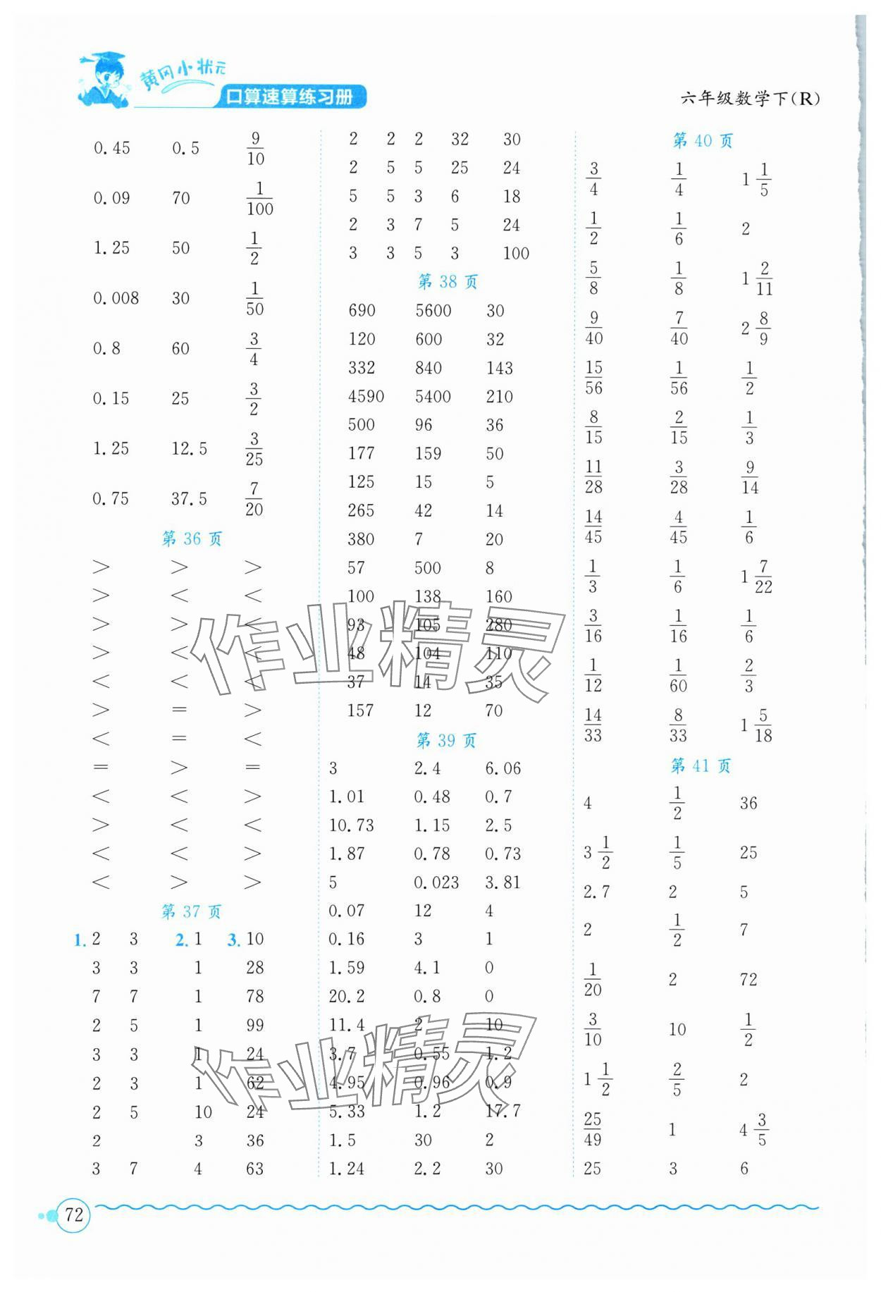 注:目前有些书本章节名称可能整理的还不是很完善,但都是按照顺序排列的,请同学们按照顺序仔细查找。练习册 2024年黄冈小状元口算速算练习册六年级数学下册人教版 答案主要是用来给同学们做完题方便对答案用的,请勿直接抄袭。