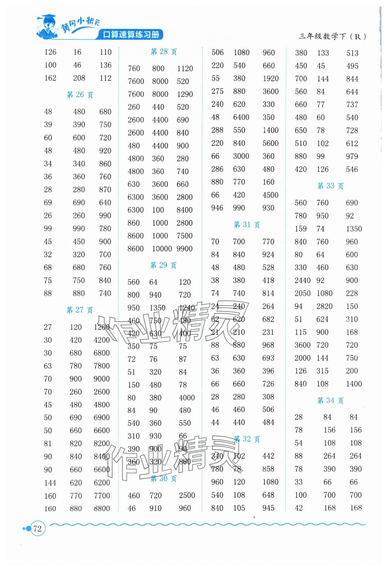 2024年黄冈小状元口算速算练习册三年级数学下册人教版