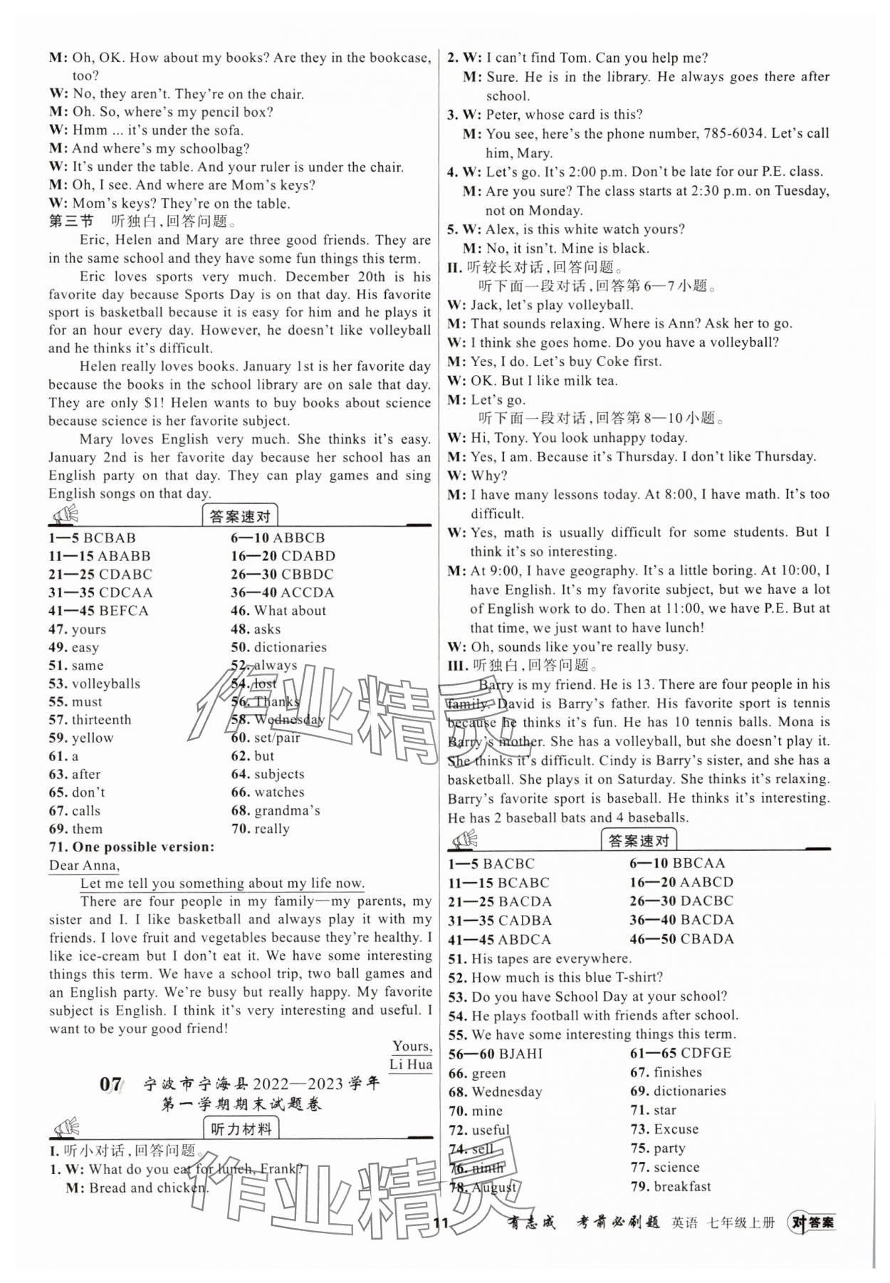 注:目前有些书本章节名称可能整理的还不是很完善,但都是按照顺序排列的,请同学们按照顺序仔细查找。练习册 2024年有志成考前必刷题七年级英语上册人教版 答案主要是用来给同学们做完题方便对答案用的,请勿直接抄袭。