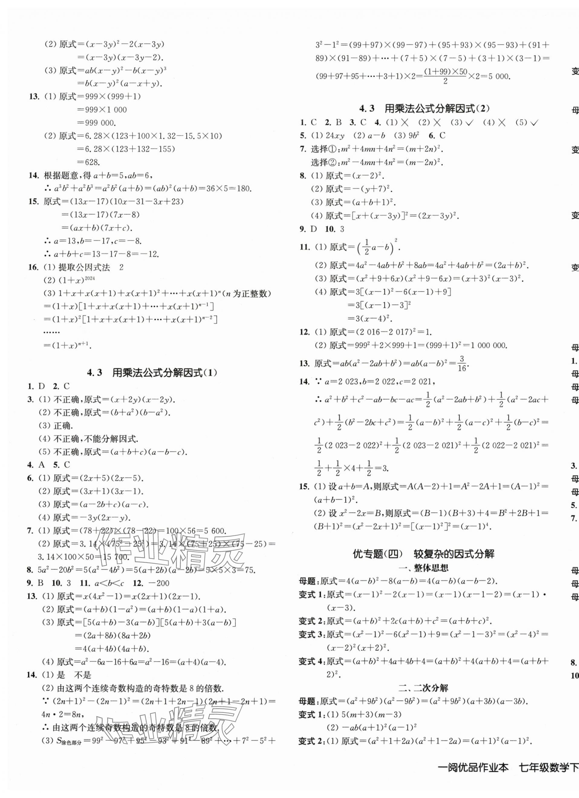 注:目前有些书本章节名称可能整理的还不是很完善,但都是按照顺序排列的,请同学们按照顺序仔细查找。练习册 2024年一阅优品作业本七年级数学下册浙教版 答案主要是用来给同学们做完题方便对答案用的,请勿直接抄袭。