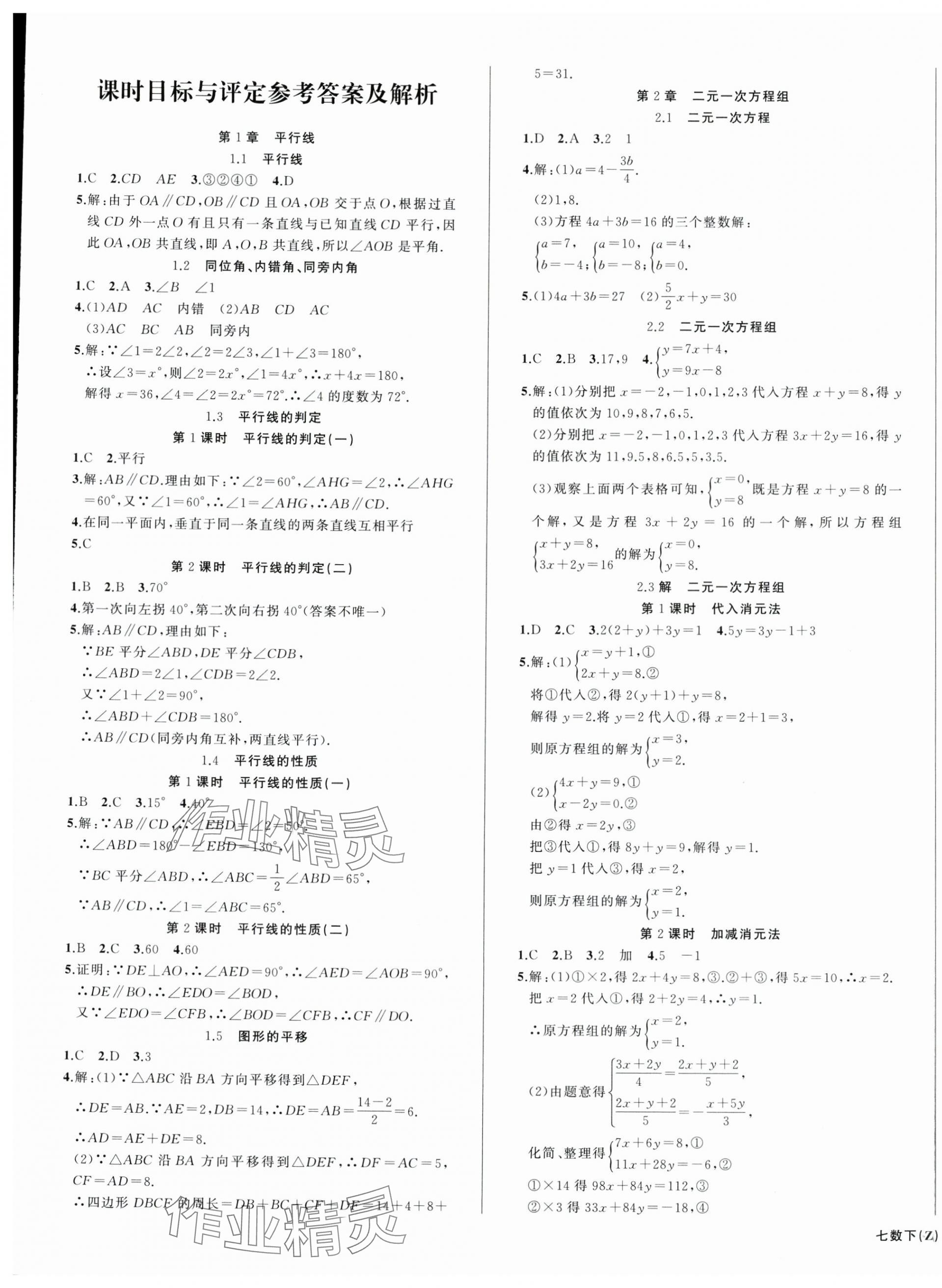 注:目前有些书本章节名称可能整理的还不是很完善,但都是按照顺序排列的,请同学们按照顺序仔细查找。练习册 2024年名师面对面同步作业本七年级数学下册浙教版浙江专版 答案主要是用来给同学们做完题方便对答案用的,请勿直接抄袭。
