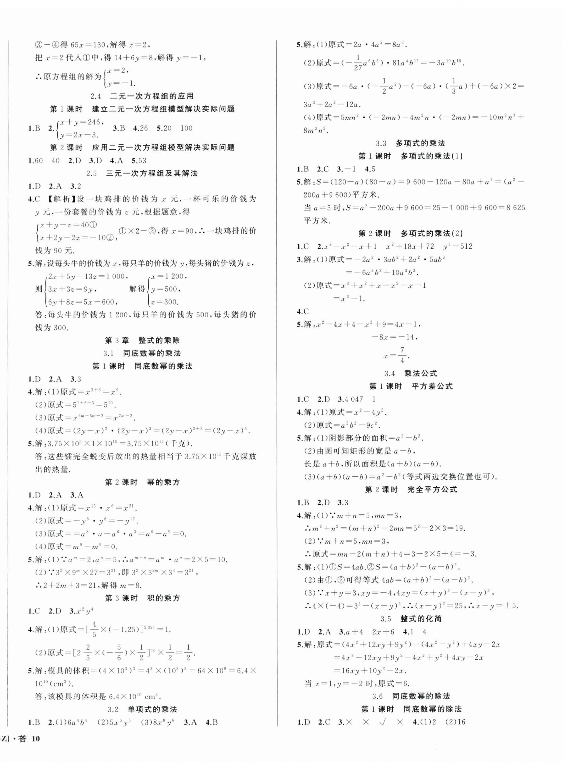 注:目前有些书本章节名称可能整理的还不是很完善,但都是按照顺序排列的,请同学们按照顺序仔细查找。练习册 2024年名师面对面同步作业本七年级数学下册浙教版浙江专版 答案主要是用来给同学们做完题方便对答案用的,请勿直接抄袭。