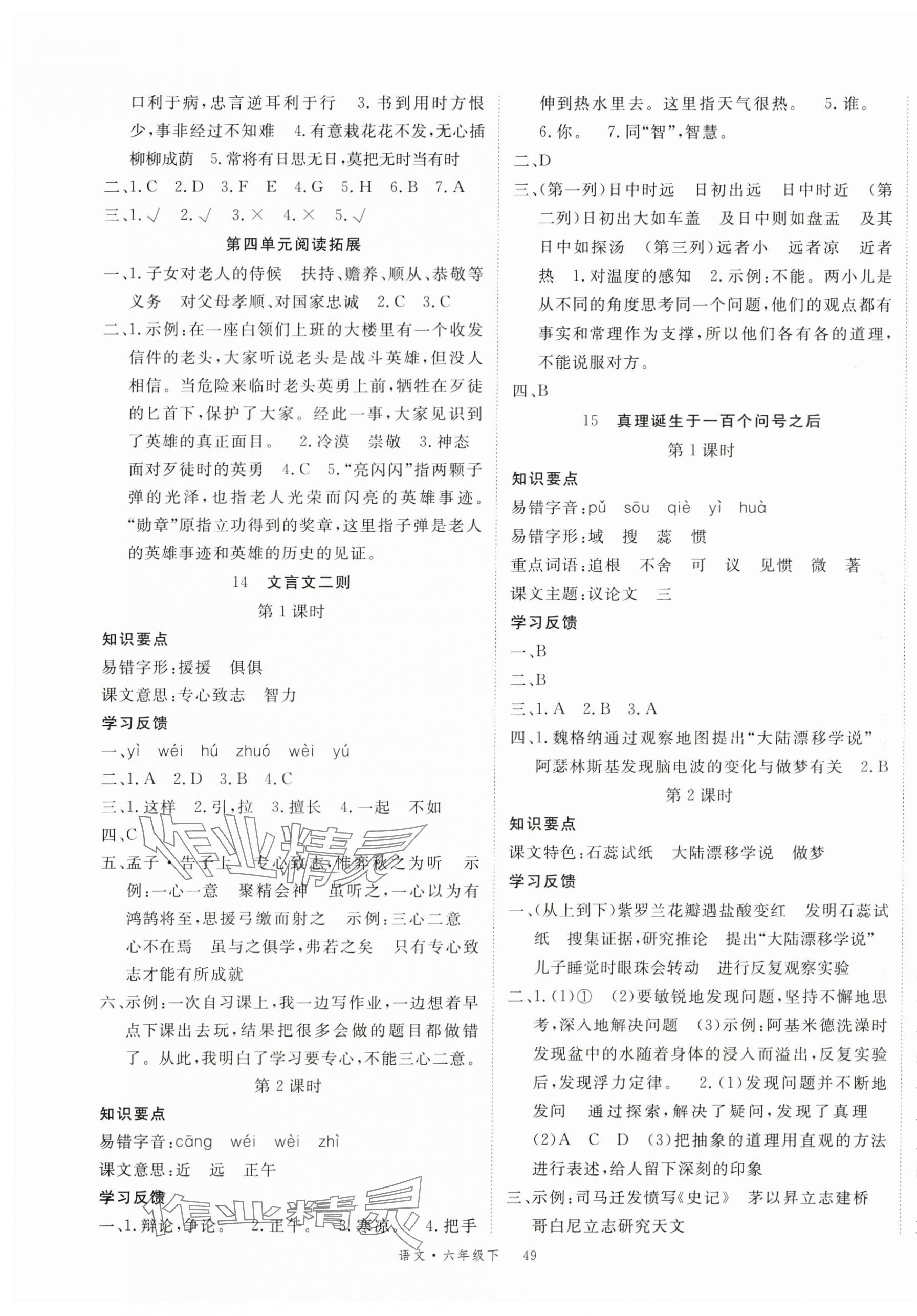 注:目前有些书本章节名称可能整理的还不是很完善,但都是按照顺序排列的,请同学们按照顺序仔细查找。练习册 2024年优翼学习单六年级语文下册人教版 答案主要是用来给同学们做完题方便对答案用的,请勿直接抄袭。