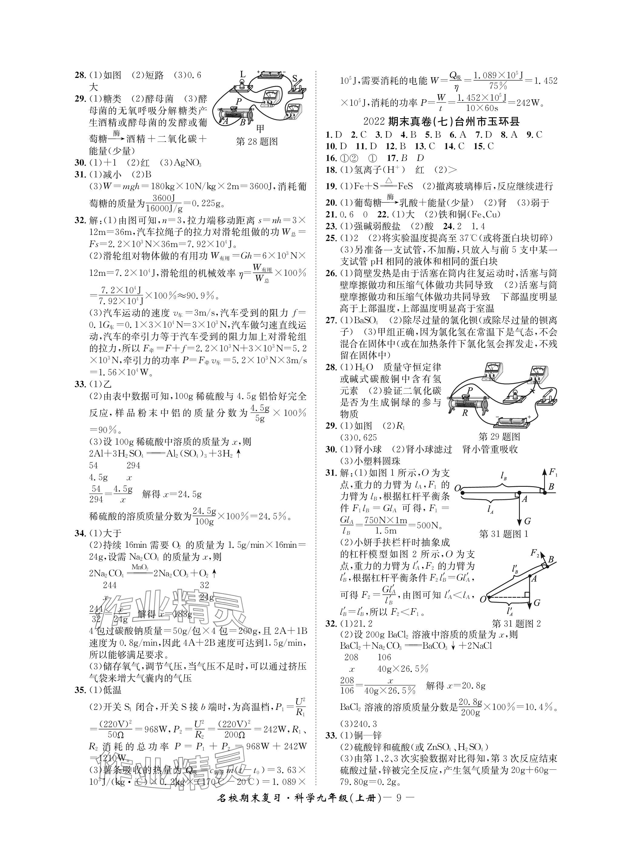 注:目前有些书本章节名称可能整理的还不是很完善,但都是按照顺序排列的,请同学们按照顺序仔细查找。练习册 2023年名校期末复习宝典九年级科学上册浙教版 答案主要是用来给同学们做完题方便对答案用的,请勿直接抄袭。