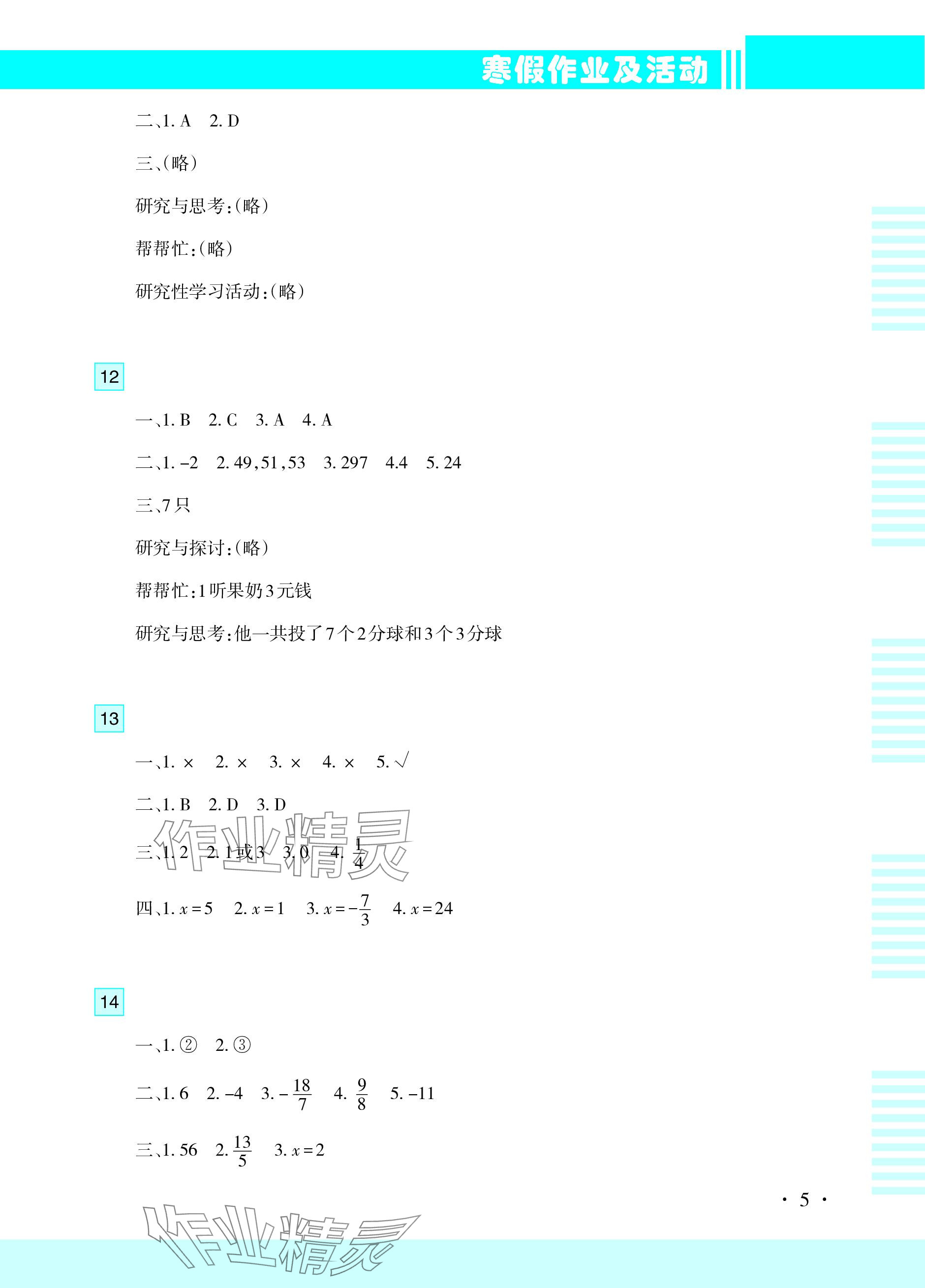 注:目前有些书本章节名称可能整理的还不是很完善,但都是按照顺序排列的,请同学们按照顺序仔细查找。练习册 2024年寒假作业及活动七年级数学 答案主要是用来给同学们做完题方便对答案用的,请勿直接抄袭。