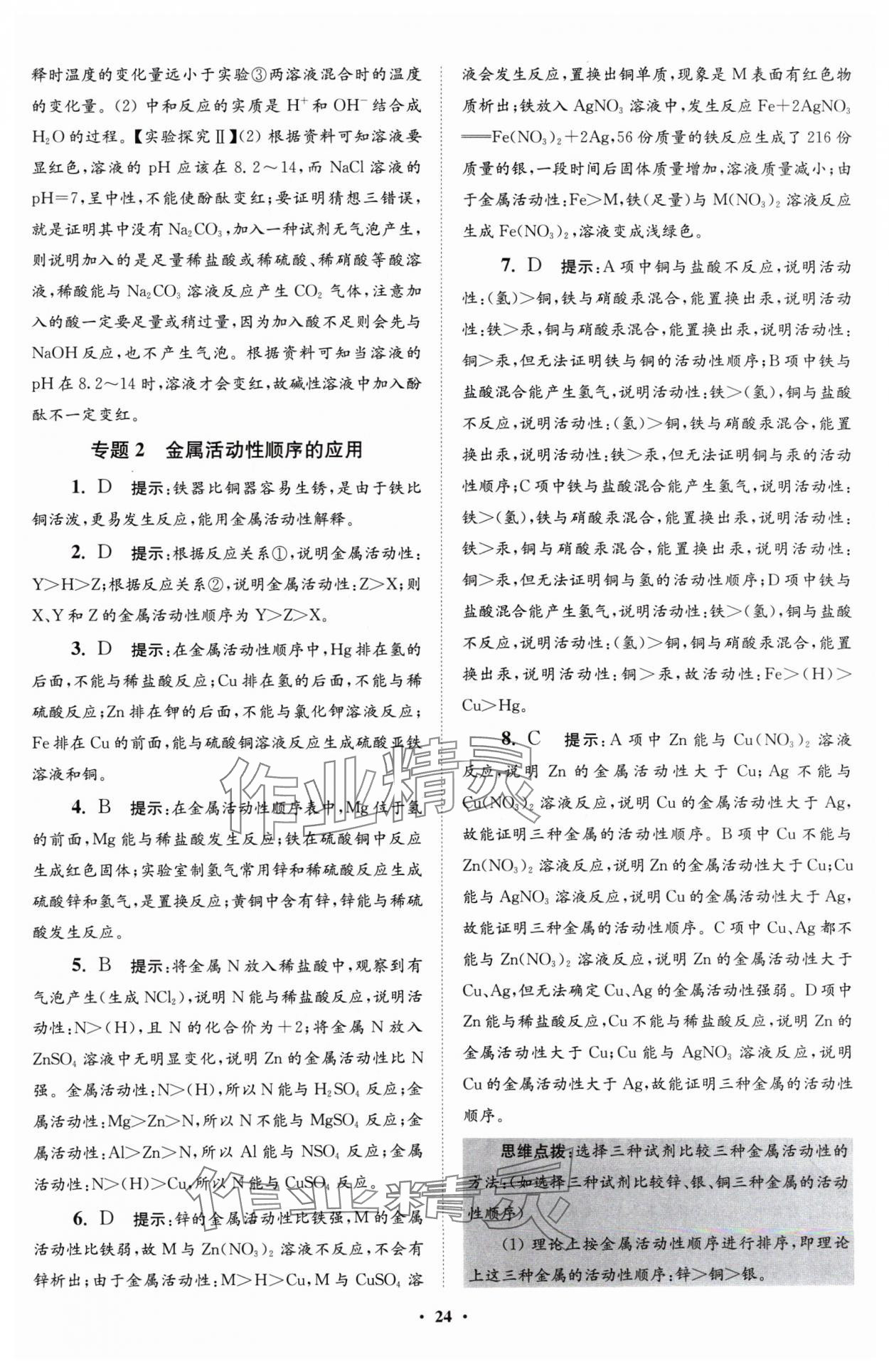 注:目前有些书本章节名称可能整理的还不是很完善,但都是按照顺序排列的,请同学们按照顺序仔细查找。练习册 2024年初中化学小题狂做九年级下册沪教版提优版 答案主要是用来给同学们做完题方便对答案用的,请勿直接抄袭。