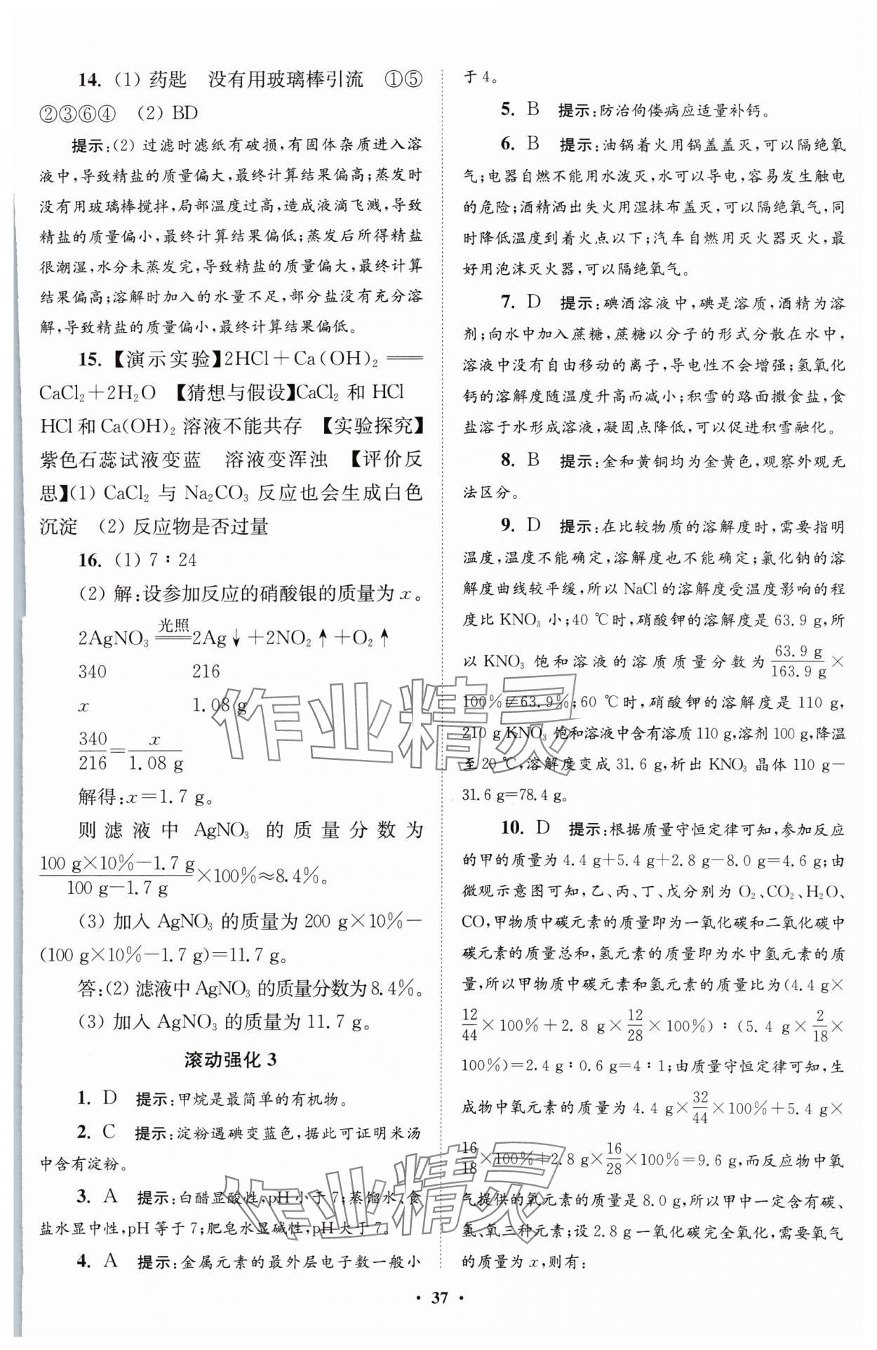 注:目前有些书本章节名称可能整理的还不是很完善,但都是按照顺序排列的,请同学们按照顺序仔细查找。练习册 2024年初中化学小题狂做九年级下册沪教版提优版 答案主要是用来给同学们做完题方便对答案用的,请勿直接抄袭。