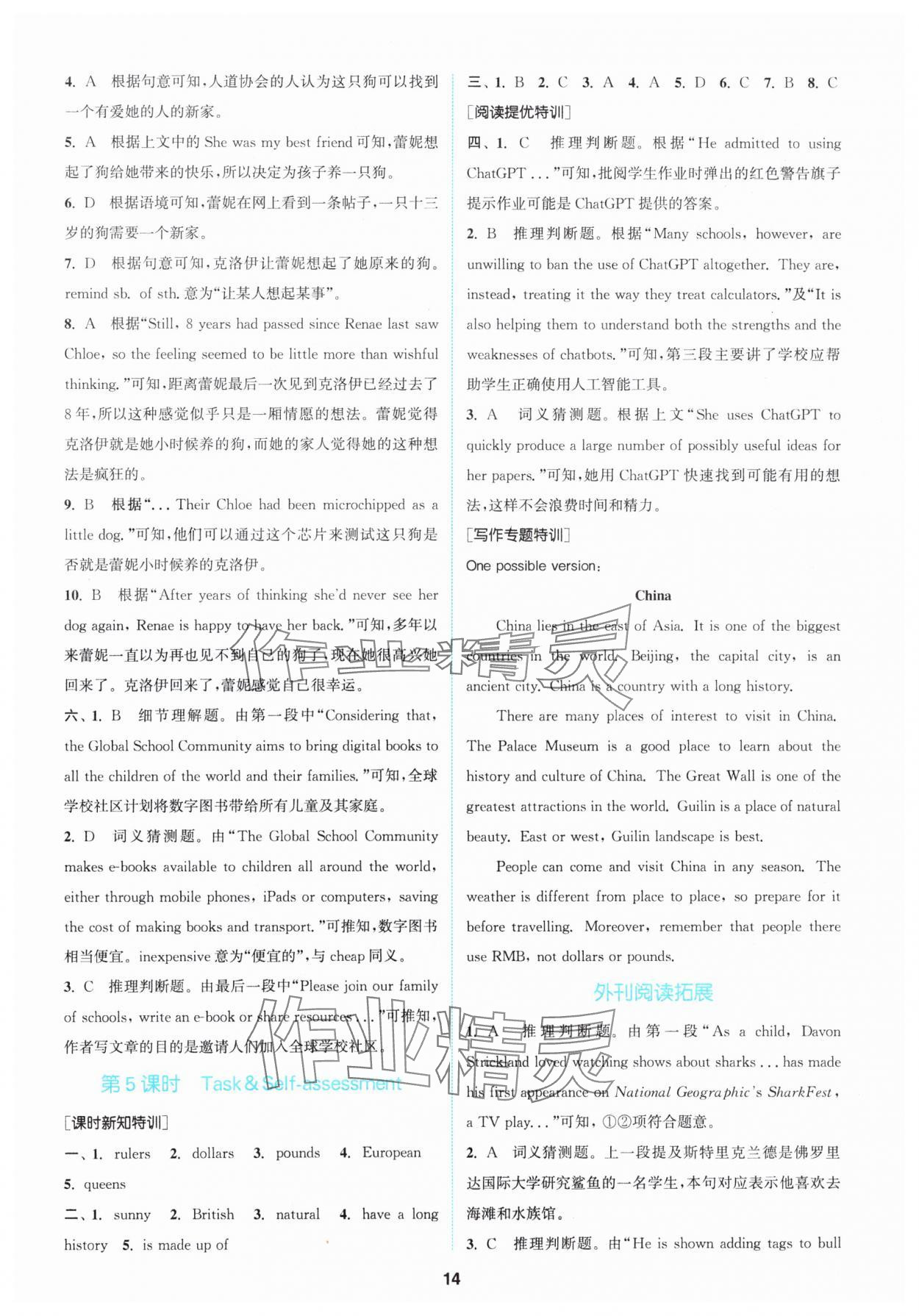 注:目前有些书本章节名称可能整理的还不是很完善,但都是按照顺序排列的,请同学们按照顺序仔细查找。练习册 2024年拔尖特训八年级英语下册译林版 答案主要是用来给同学们做完题方便对答案用的,请勿直接抄袭。