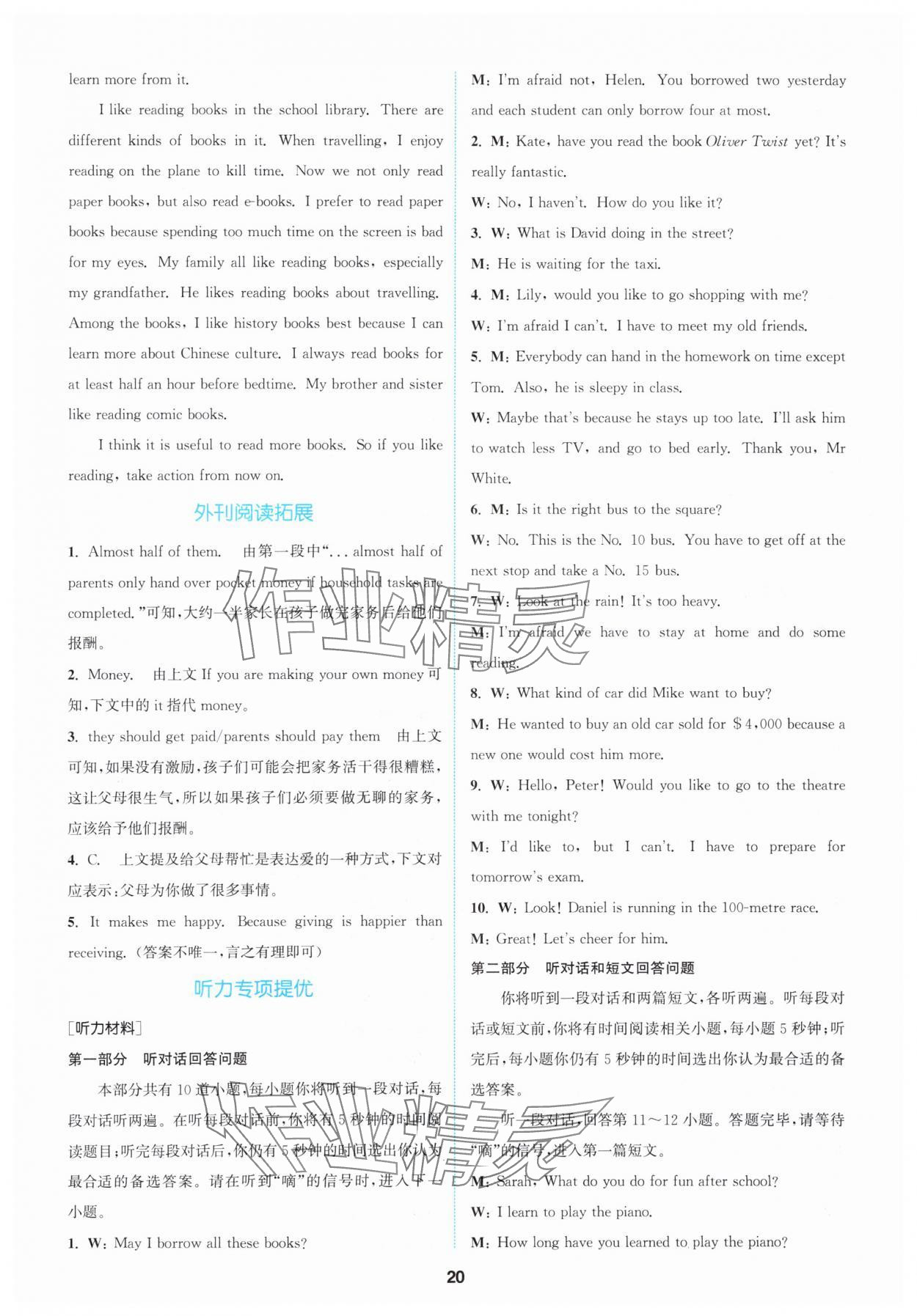 注:目前有些书本章节名称可能整理的还不是很完善,但都是按照顺序排列的,请同学们按照顺序仔细查找。练习册 2024年拔尖特训八年级英语下册译林版 答案主要是用来给同学们做完题方便对答案用的,请勿直接抄袭。
