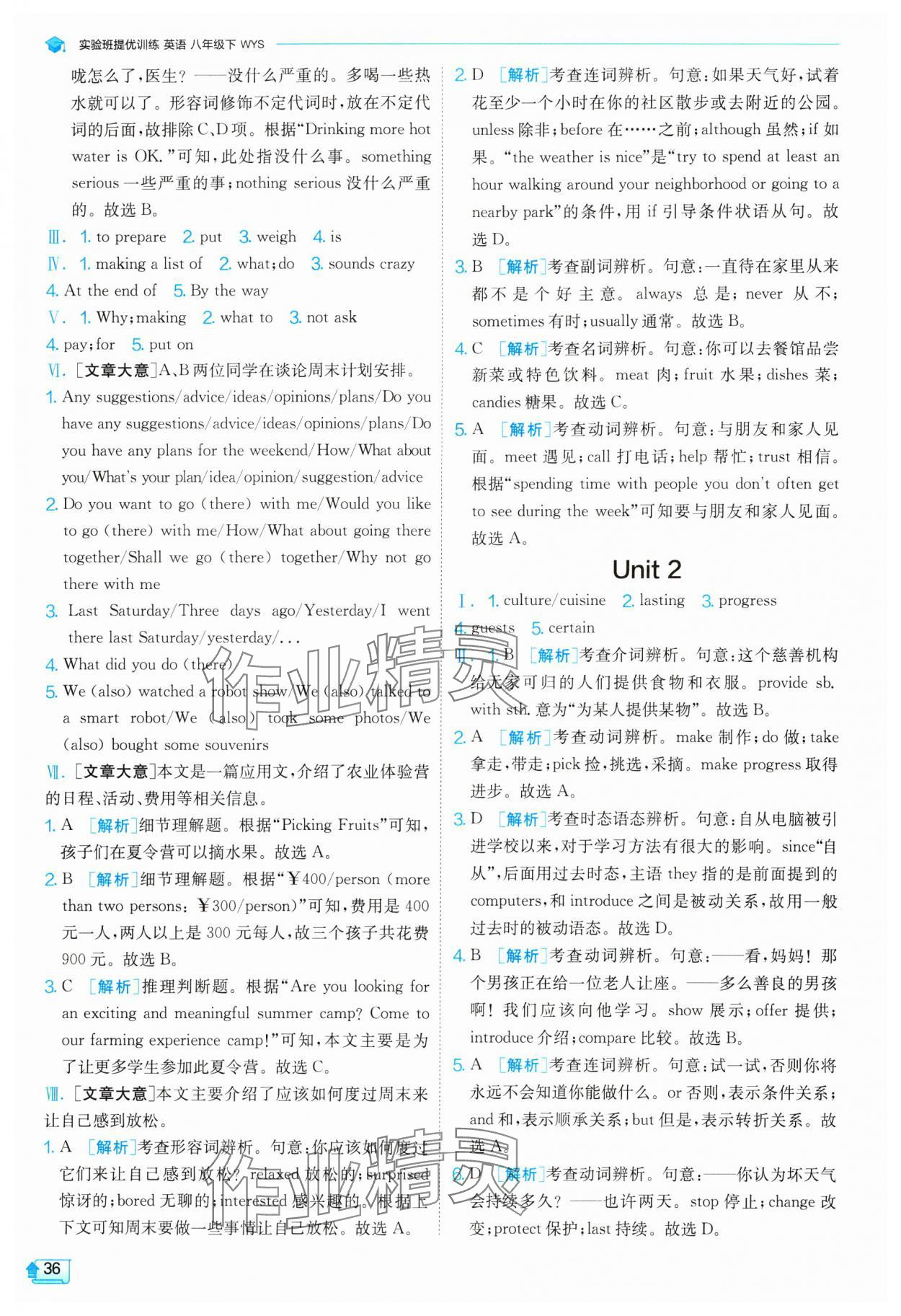 注:目前有些书本章节名称可能整理的还不是很完善,但都是按照顺序排列的,请同学们按照顺序仔细查找。练习册 2024年实验班提优训练八年级英语下册外研版 答案主要是用来给同学们做完题方便对答案用的,请勿直接抄袭。