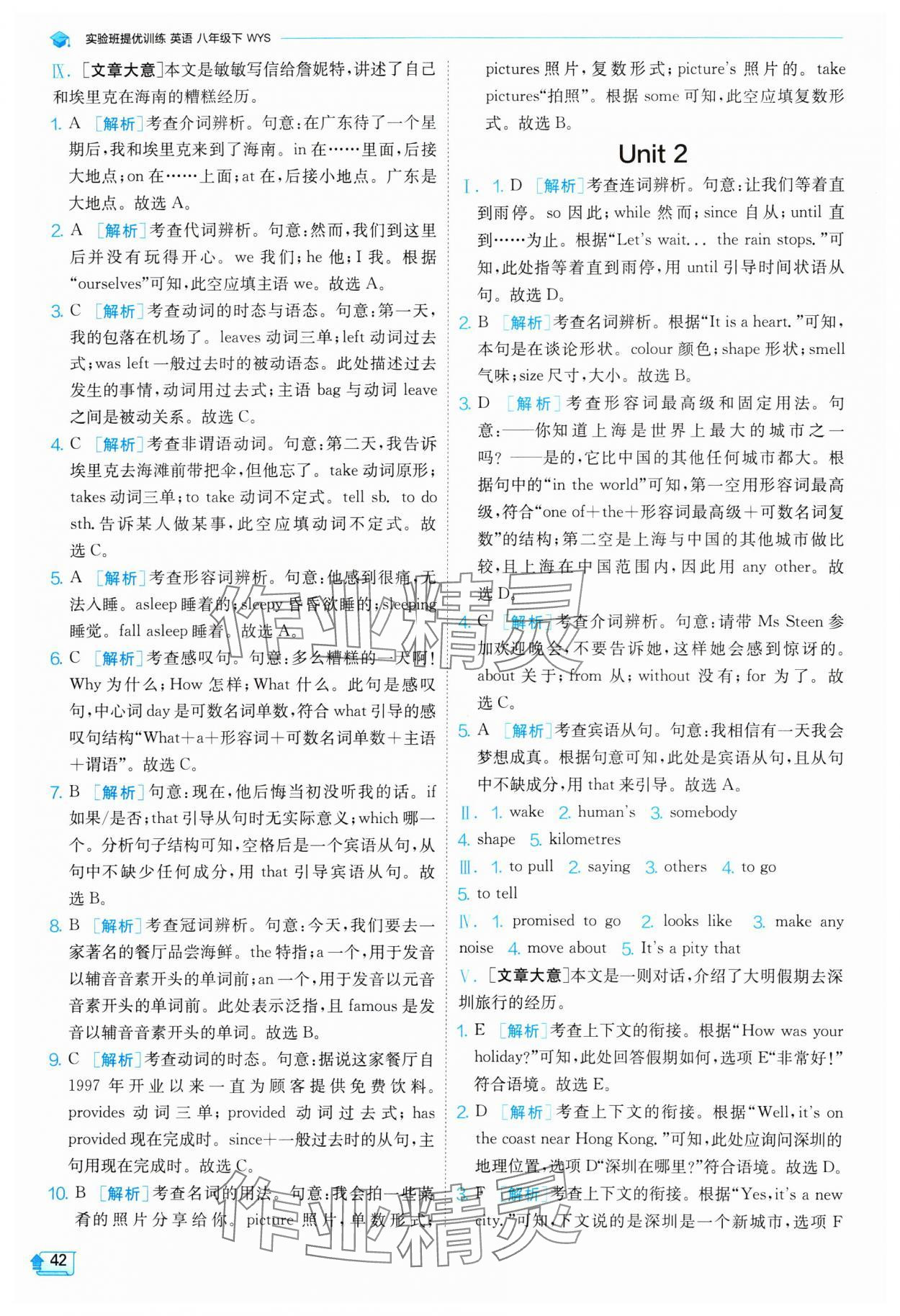注:目前有些书本章节名称可能整理的还不是很完善,但都是按照顺序排列的,请同学们按照顺序仔细查找。练习册 2024年实验班提优训练八年级英语下册外研版 答案主要是用来给同学们做完题方便对答案用的,请勿直接抄袭。