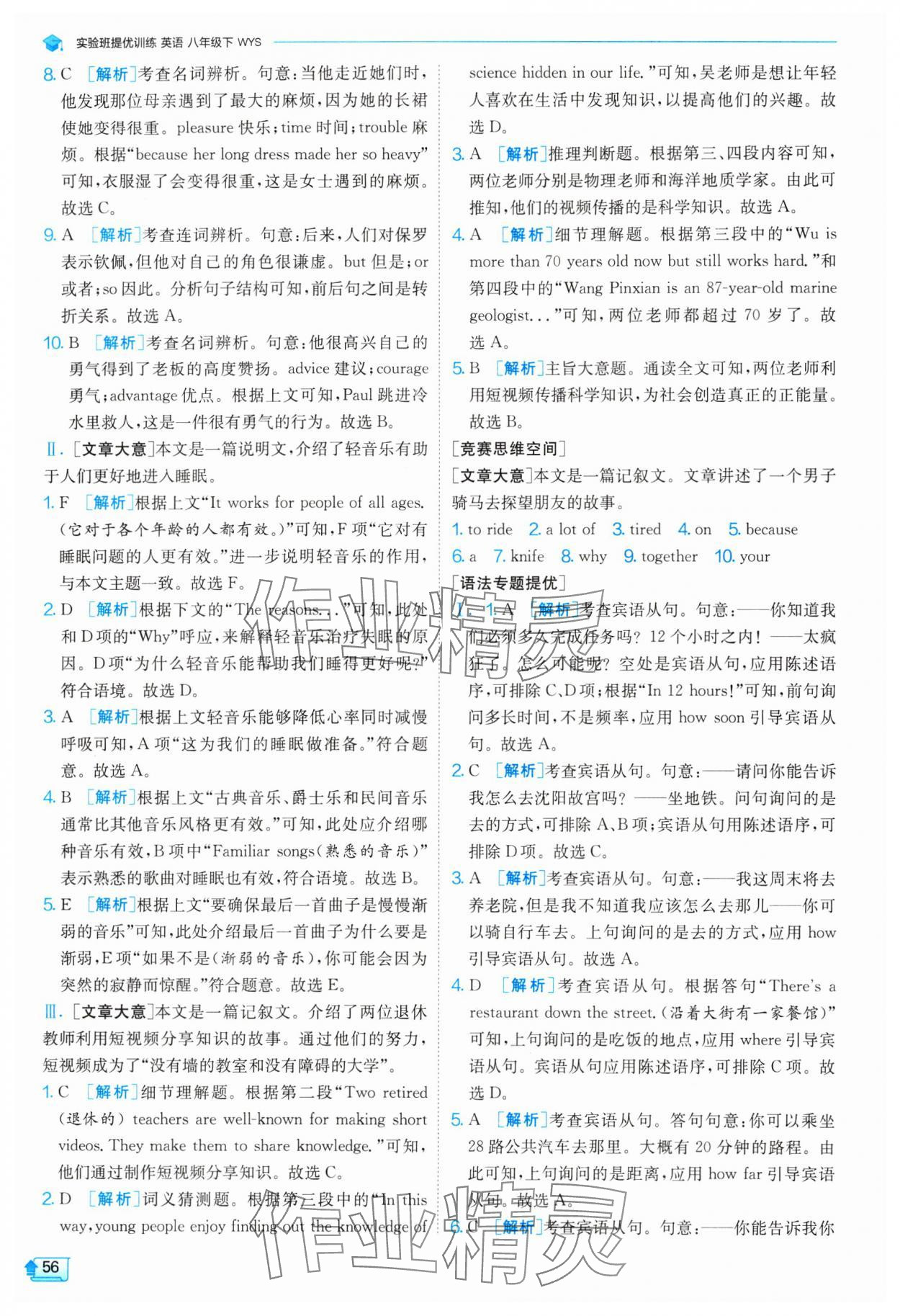 注:目前有些书本章节名称可能整理的还不是很完善,但都是按照顺序排列的,请同学们按照顺序仔细查找。练习册 2024年实验班提优训练八年级英语下册外研版 答案主要是用来给同学们做完题方便对答案用的,请勿直接抄袭。
