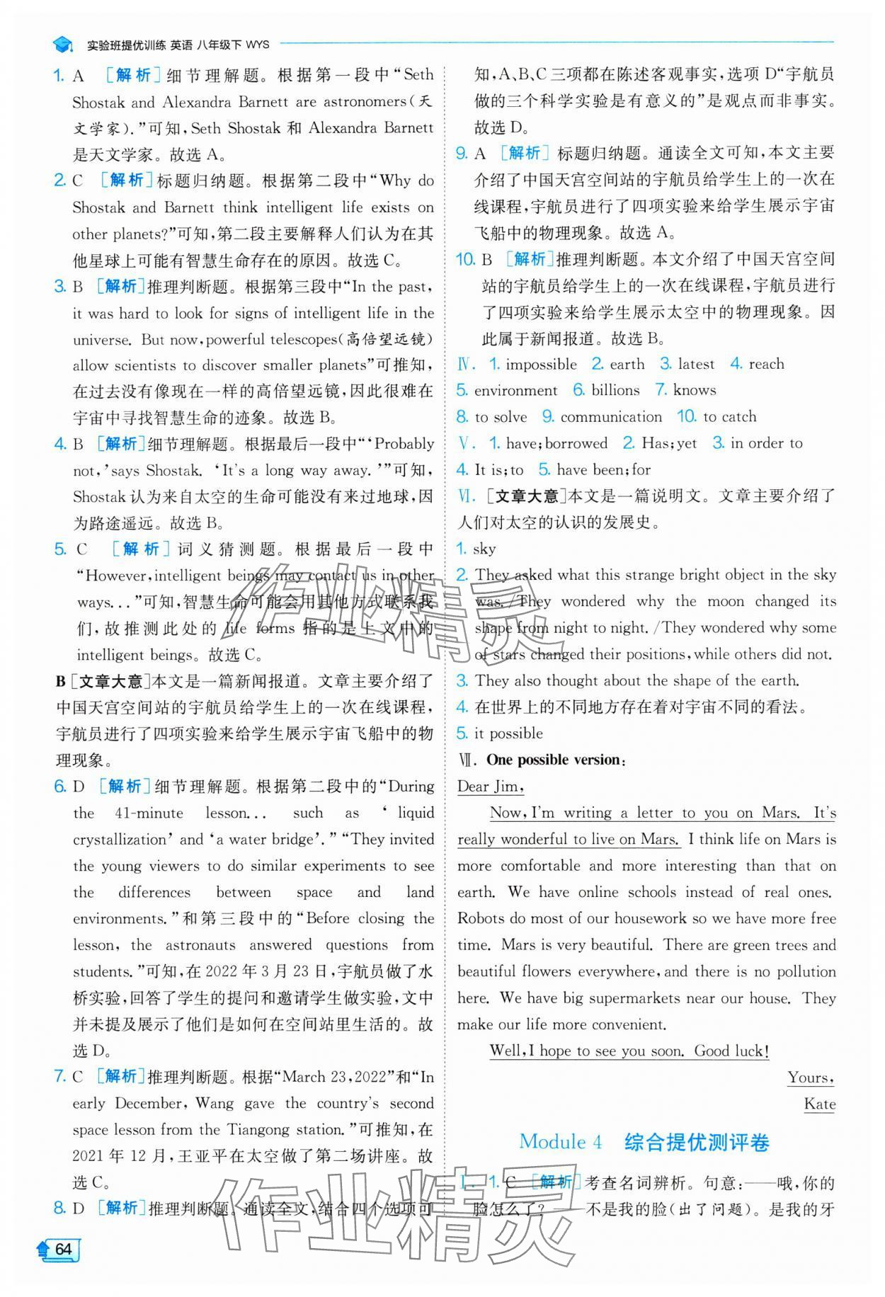 注:目前有些书本章节名称可能整理的还不是很完善,但都是按照顺序排列的,请同学们按照顺序仔细查找。练习册 2024年实验班提优训练八年级英语下册外研版 答案主要是用来给同学们做完题方便对答案用的,请勿直接抄袭。